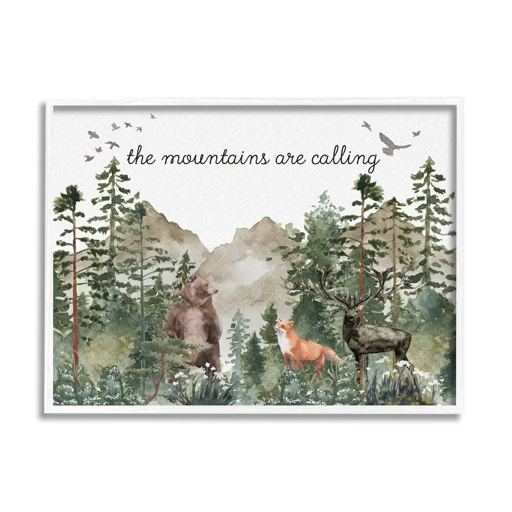 Stupell Mountains Are Calling Wilderness Animals Woodlands Trees Framed Wall Art - Green - 20 X 16 - Grey