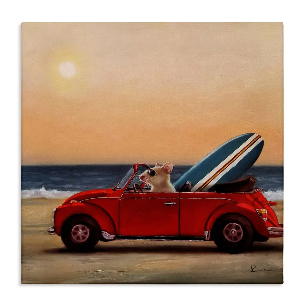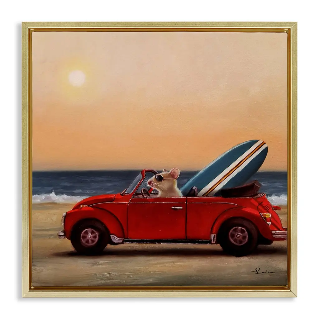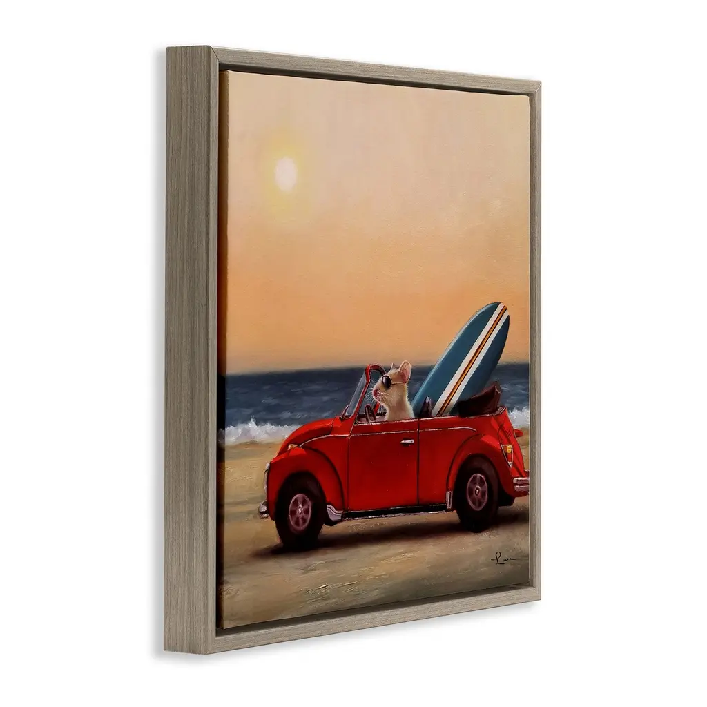 Elevate your home or office to the next level with Stupell Framed Floating Canvas Wall Art. Our premium hand-stretched canvas is mounted securely into a sturdy lightweight frame. The museum-style gap between the wrapped canvas and the box frame gives the illusion of floating artwork. Stupell Wall Art is made in the USA.Features: Dimensions: 18 x 1.7 x 18 Frame, 17 x 1.5 x 17 Canvas ArtFloating Frame Canvas Products are available in sizes 18"x18" and 25"x25". All Floating Frame Canvas Products have a 1.7" Depth.Wall Art is Ready to Hang with Hardware Free Hanging. No Installation required. For Easy Set Up Lean or Layer Artwork on Shelf or Against Wall. Artwork is Permently Fixed into the Frame.Our elevated 1.7" Thick Floating Frame is the perfect complement to our canvas style Wall Art. We use only the highest quality inks in house with industry leading printing solutions. Canvas is hand stretched over a durable wood foundation and then mounted securly into a Modern Box Frame. Made in the USA.Artwork Relates To: Animal, Mouse, Car, Beach, Surfboard, Summer, Humor, SumemrDesign by Lucia Heffernan