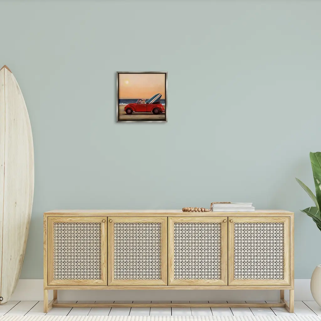 Elevate your home or office to the next level with Stupell Framed Floating Canvas Wall Art. Our premium hand-stretched canvas is mounted securely into a sturdy lightweight frame. The museum-style gap between the wrapped canvas and the box frame gives the illusion of floating artwork. Stupell Wall Art is made in the USA.Features: Dimensions: 18 x 1.7 x 18 Frame, 17 x 1.5 x 17 Canvas ArtFloating Frame Canvas Products are available in sizes 18"x18" and 25"x25". All Floating Frame Canvas Products have a 1.7" Depth.Wall Art is Ready to Hang with Hardware Free Hanging. No Installation required. For Easy Set Up Lean or Layer Artwork on Shelf or Against Wall. Artwork is Permently Fixed into the Frame.Our elevated 1.7" Thick Floating Frame is the perfect complement to our canvas style Wall Art. We use only the highest quality inks in house with industry leading printing solutions. Canvas is hand stretched over a durable wood foundation and then mounted securly into a Modern Box Frame. Made in the USA.Artwork Relates To: Animal, Mouse, Car, Beach, Surfboard, Summer, Humor, SumemrDesign by Lucia Heffernan