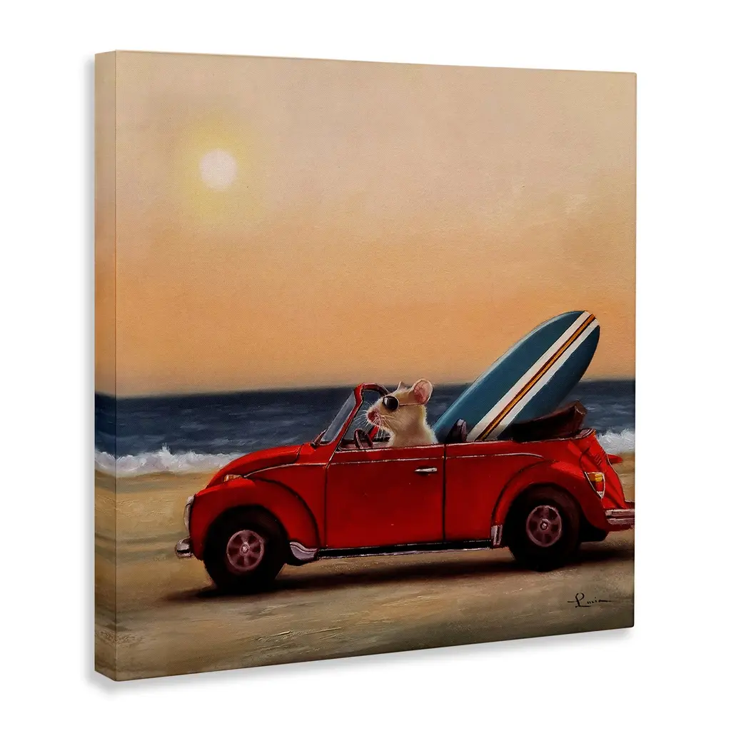 Stupell Mouse Beach Cruise Surf And Sand Car Canvas Wall Art - Multi-Color - 24 X 24