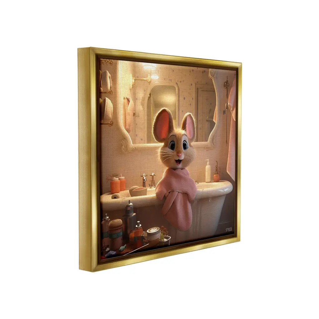 Elevate your home or office to the next level with Stupell Framed Floating Canvas Wall Art. Our premium hand-stretched canvas is mounted securely into a sturdy lightweight frame. The museum-style gap between the wrapped canvas and the box frame gives the illusion of floating artwork. Stupell Wall Art is made in the USA.Features: Dimensions: 18 x 1.7 x 18 Frame, 17 x 1.5 x 17 Canvas ArtFloating Frame Canvas Products are available in sizes 18"x18" and 25"x25". All Floating Frame Canvas Products have a 1.7" Depth.Wall Art is Ready to Hang with Hardware Free Hanging. No Installation required. For Easy Set Up Lean or Layer Artwork on Shelf or Against Wall. Artwork is Permently Fixed into the Frame.Our elevated 1.7" Thick Floating Frame is the perfect complement to our canvas style Wall Art. We use only the highest quality inks in house with industry leading printing solutions. Canvas is hand stretched over a durable wood foundation and then mounted securly into a Modern Box Frame. Made in the USA.Artwork Relates To: Bathing, Basin, Bathtub, Tub, Indoors, Bathroom, Room, Hygiene, Animal, MouseDesign by RB