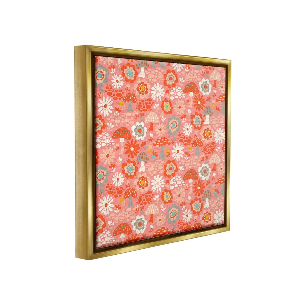 Stupell Mushroom & Floral Pattern Framed Floater Canvas Wall Art Design By Carrie Cantwell - 18 X 18 - Gold