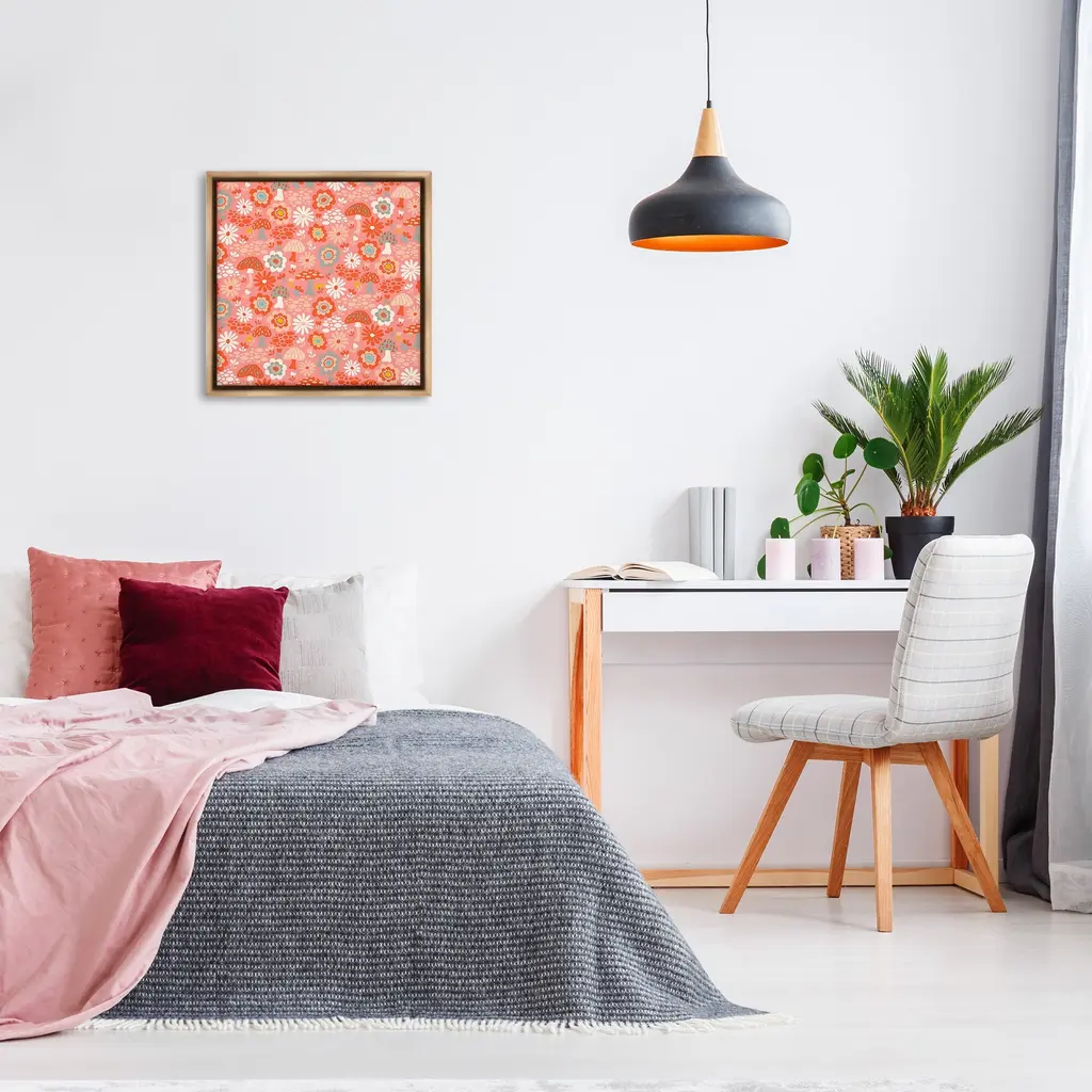 Elevate your home or office to the next level with Stupell Framed Floating Canvas Wall Art. Our premium hand-stretched canvas is mounted securely into a sturdy lightweight frame. The museum-style gap between the wrapped canvas and the box frame gives the illusion of floating artwork. Stupell Wall Art is made in the USA.Features: Dimensions: 18 x 1.7 x 18 Frame, 17 x 1.5 x 17 Canvas ArtFloating Frame Canvas Products are available in sizes 18"x18" and 25"x25". All Floating Frame Canvas Products have a 1.7" Depth.Wall Art is Ready to Hang with Hardware Free Hanging. No Installation required. For Easy Set Up Lean or Layer Artwork on Shelf or Against Wall. Artwork is Permently Fixed into the Frame.Our elevated 1.7" Thick Floating Frame is the perfect complement to our canvas style Wall Art. We use only the highest quality inks in house with industry leading printing solutions. Canvas is hand stretched over a durable wood foundation and then mounted securly into a Modern Box Frame. Made in the USA.Artwork Relates To: Pattern, Fungus, Plant, Floral, Flower, Mushroom, Groovy, Botanical, RetroDesign by Carrie Cantwell