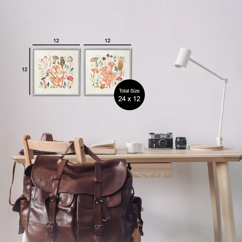 Fill any space in your home or office with our Framed Wall Art Sets. Our framed artwork is securely mounted into a 1.5-inch thick wood grain frame and ready to hang. Frames are available in three alluring styles: black, gray farmhouse and white. Stupell Wall Art is made in the USA.Features: Dimensions: 2 Piece Set, Each Panel is 12 x 1.5 x 12 FramedTwo Piece Framed Giclee Sets are available as 12"x12", 17"x17" or 24"x24" Panels. All Framed giclee Products have a 1.5" Depth.Wall Art is Ready to Hang with Hardware Free Hanging. No installation required. For Easy Set Up Lean or Layer Artwork on Shelf or Against Wall.Curated Wall Art Sets make it easy for you complete the theme for any room. Our giclée prints are carefully mounted on a durable MDF backing, and then perfectly finished in a 1.5 inch thick woodgrain frame. Mounted frame colors include black, gray farmhouse and white. Made In USA.Artwork Relates To: Fungus, Plant, Mushroom, Agaric, Botanical, Woodland, Leaf, Forest, PatternDesign by Annie Warren