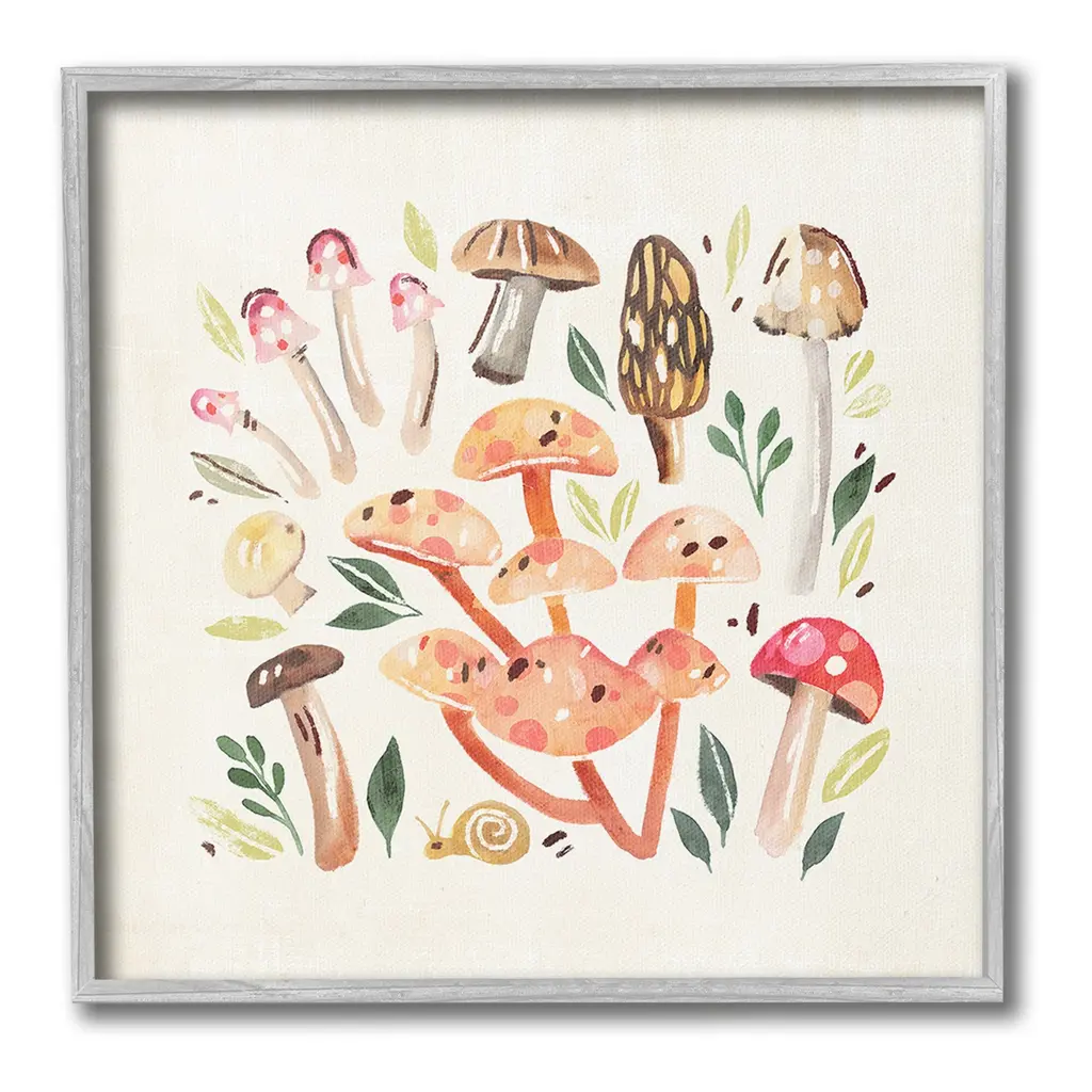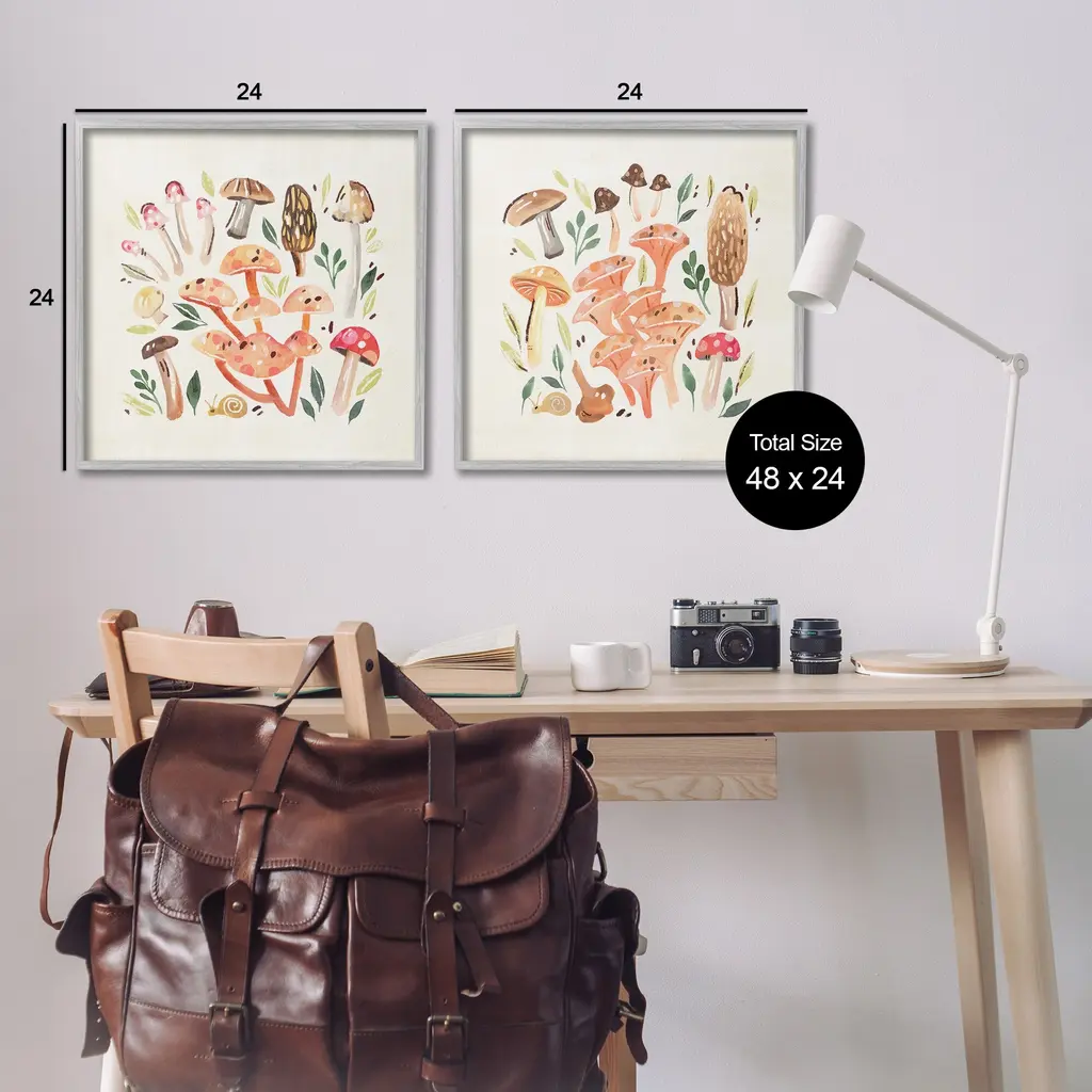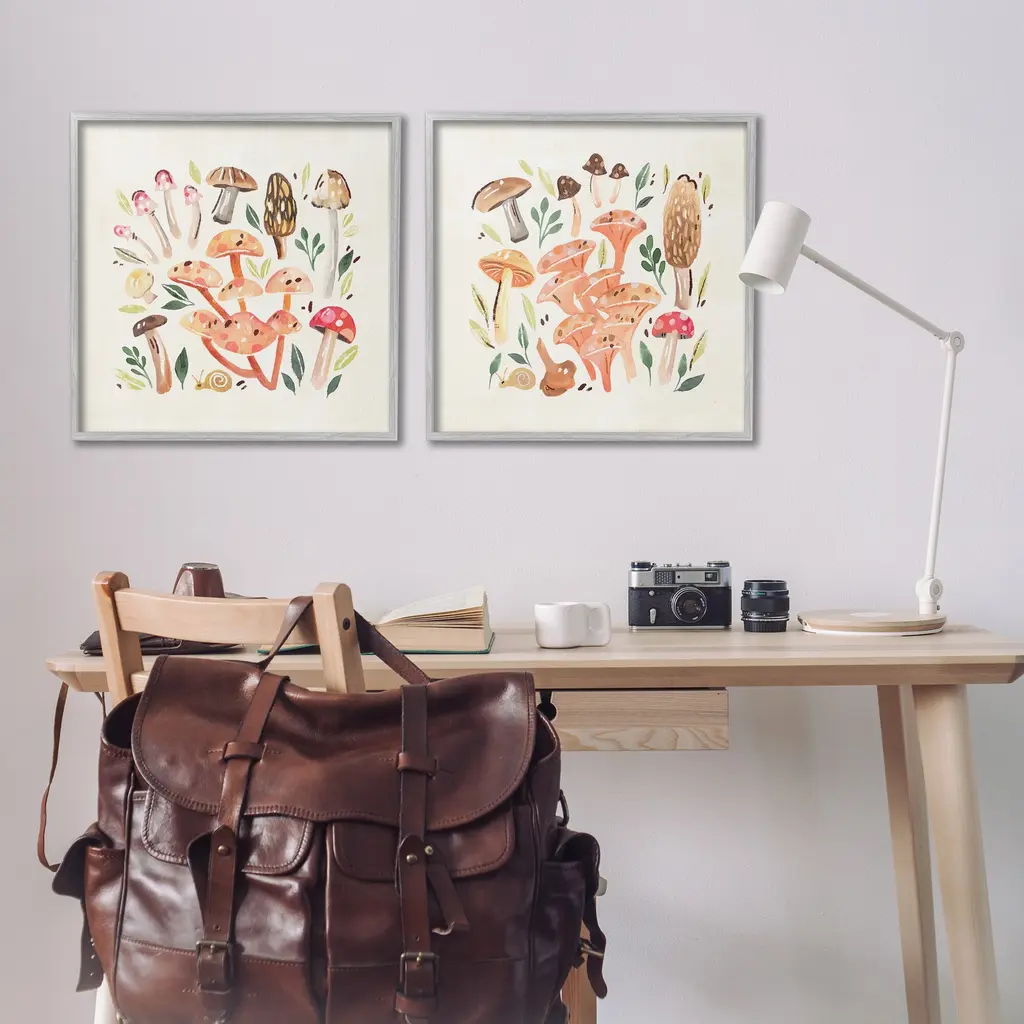 Fill any space in your home or office with our Framed Wall Art Sets. Our framed artwork is securely mounted into a 1.5-inch thick wood grain frame and ready to hang. Frames are available in three alluring styles: black, gray farmhouse and white. Stupell Wall Art is made in the USA.Features: Dimensions: 2 Piece Set, Each Panel is 12 x 1.5 x 12 FramedTwo Piece Framed Giclee Sets are available as 12"x12", 17"x17" or 24"x24" Panels. All Framed giclee Products have a 1.5" Depth.Wall Art is Ready to Hang with Hardware Free Hanging. No installation required. For Easy Set Up Lean or Layer Artwork on Shelf or Against Wall.Curated Wall Art Sets make it easy for you complete the theme for any room. Our giclée prints are carefully mounted on a durable MDF backing, and then perfectly finished in a 1.5 inch thick woodgrain frame. Mounted frame colors include black, gray farmhouse and white. Made In USA.Artwork Relates To: Fungus, Plant, Mushroom, Agaric, Botanical, Woodland, Leaf, Forest, PatternDesign by Annie Warren