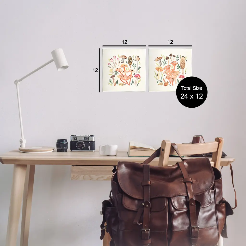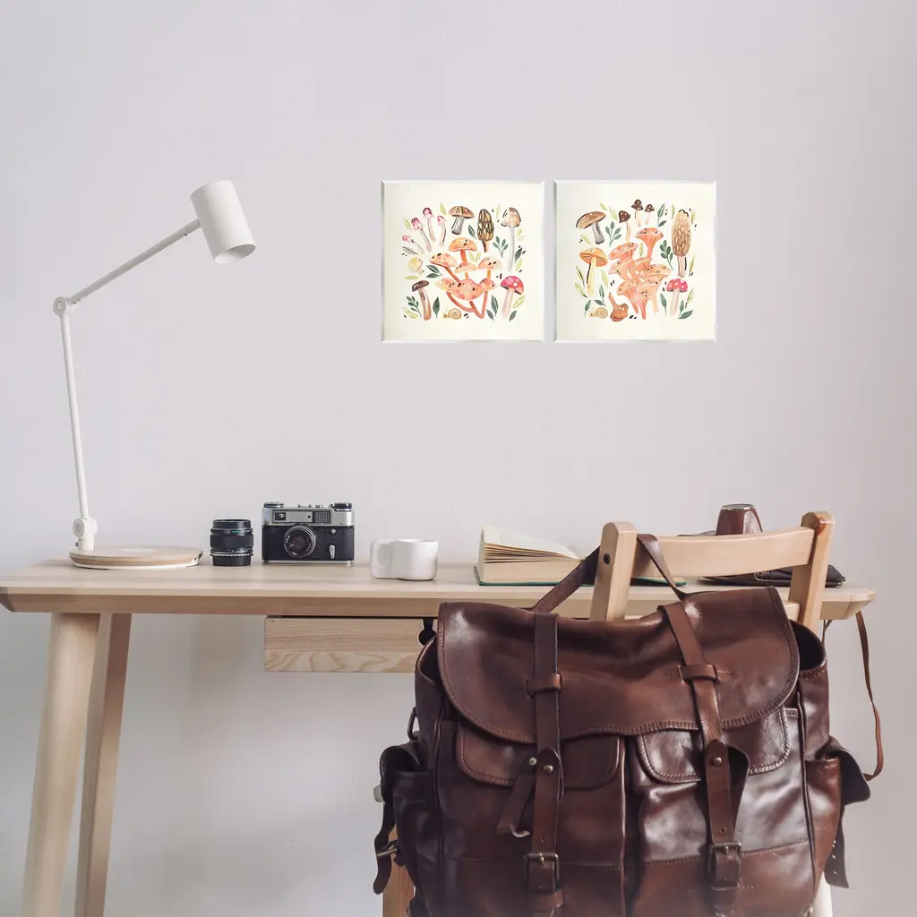Fill any space with Stupell Wall Art Sets. Our wall plaques start as high-quality lithograph prints mounted on durable 0.5-inch thick MDF wood. Each piece is hand finished and comes with a fresh layer of white foil on the sides to give it a crisp, clean look. Plaques arrive ready to hang without installation and come with removable plastic corners to keep them from damage in transit. Stupell Wall Art is made in the USA.Features: Dimensions: 2 Piece Set, Each Panel is 12 x 0.5 x 12 InchesWall Art is Ready to Hang with Hardware Free Hanging. No Installation required. For Easy Set Up Lean or Layer Artwork on Shelf or Against Wall. Artwork is Permently Fixed into the Frame.All of our wall plaques start off as high quality lithograph prints that are then mounted on durable 0.5 inch thick MDF wood. Each piece is hand finished and comes with a fresh layer of foil on the sides to give it a crisp clean look. Made In USA.Artwork Relates To: Fungus, Plant, Mushroom, Agaric, Botanical, Woodland, Leaf, Forest, PatternDesign by Annie Warren