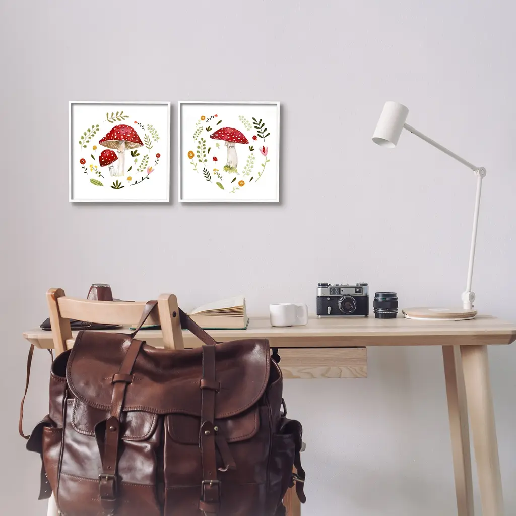 Fill any space in your home or office with our Framed Wall Art Sets. Our framed artwork is securely mounted into a 1.5-inch thick wood grain frame and ready to hang. Frames are available in three alluring styles: black, gray farmhouse and white. Stupell Wall Art is made in the USA.Features: Dimensions: 2 Piece Set, Each Panel is 12 x 1.5 x 12 FramedFramed Giclee Set Sizes Include Standard: 2pc, Each is 12 x 1.5 x 12 Large: 2pc, Each is 17 x 1.5 x 17 Oversized: 2pc, Each is 24 x 1.5 x 24Wall Art is Ready to Hang with Hardware Free Hanging. No installation required. For Easy Set Up Lean or Layer Artwork on Shelf or Against Wall.Curated Wall Art Sets make it easy for you complete the theme for any room. Our giclée prints are carefully mounted on a durable MDF backing, and then perfectly finished in a 1.5 inch thick woodgrain frame. Mounted frame colors include black, gray farmhouse and white. Made In USA.Artwork Relates To: Fungus, Plant, Pattern, Mushroom, Botanical, Floral, Herb, WoodlandDesign by Victoria Barnes