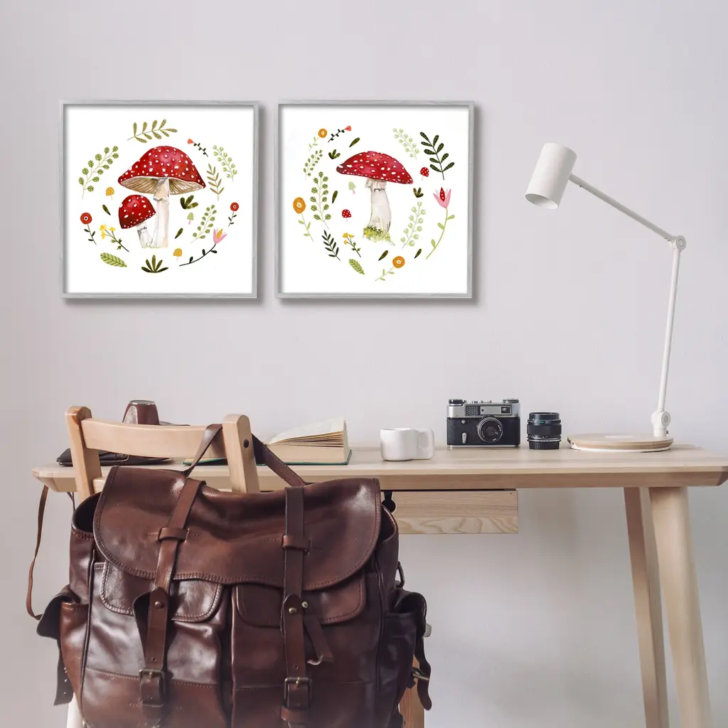 Fill any space in your home or office with our Framed Wall Art Sets. Our framed artwork is securely mounted into a 1.5-inch thick wood grain frame and ready to hang. Frames are available in three alluring styles: black, gray farmhouse and white. Stupell Wall Art is made in the USA.Features: Dimensions: 2 Piece Set, Each Panel is 12 x 1.5 x 12 FramedFramed Giclee Set Sizes Include Standard: 2pc, Each is 12 x 1.5 x 12 Large: 2pc, Each is 17 x 1.5 x 17 Oversized: 2pc, Each is 24 x 1.5 x 24Wall Art is Ready to Hang with Hardware Free Hanging. No installation required. For Easy Set Up Lean or Layer Artwork on Shelf or Against Wall.Curated Wall Art Sets make it easy for you complete the theme for any room. Our giclée prints are carefully mounted on a durable MDF backing, and then perfectly finished in a 1.5 inch thick woodgrain frame. Mounted frame colors include black, gray farmhouse and white. Made In USA.Artwork Relates To: Fungus, Plant, Pattern, Mushroom, Botanical, Floral, Herb, WoodlandDesign by Victoria Barnes