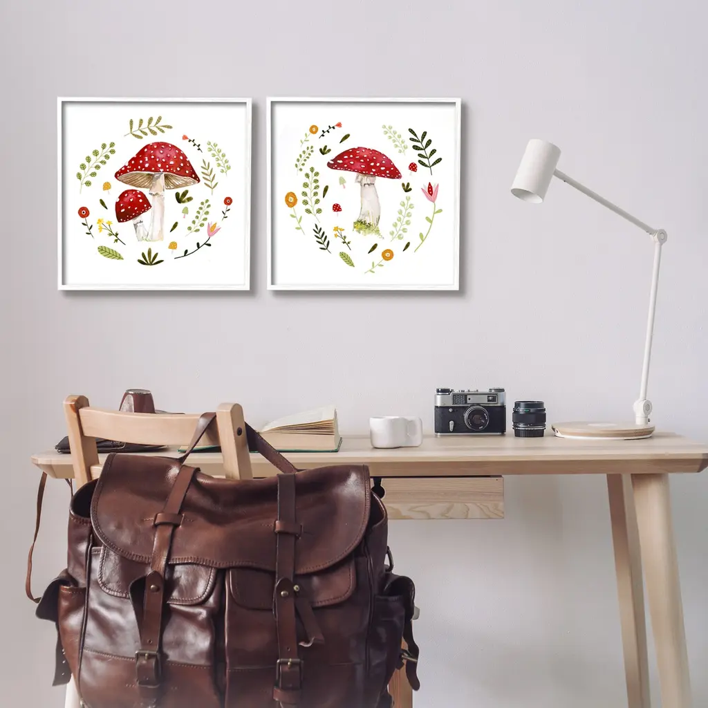 Fill any space in your home or office with our Framed Wall Art Sets. Our framed artwork is securely mounted into a 1.5-inch thick wood grain frame and ready to hang. Frames are available in three alluring styles: black, gray farmhouse and white. Stupell Wall Art is made in the USA.Features: Dimensions: 2 Piece Set, Each Panel is 12 x 1.5 x 12 FramedFramed Giclee Set Sizes Include Standard: 2pc, Each is 12 x 1.5 x 12 Large: 2pc, Each is 17 x 1.5 x 17 Oversized: 2pc, Each is 24 x 1.5 x 24Wall Art is Ready to Hang with Hardware Free Hanging. No installation required. For Easy Set Up Lean or Layer Artwork on Shelf or Against Wall.Curated Wall Art Sets make it easy for you complete the theme for any room. Our giclée prints are carefully mounted on a durable MDF backing, and then perfectly finished in a 1.5 inch thick woodgrain frame. Mounted frame colors include black, gray farmhouse and white. Made In USA.Artwork Relates To: Fungus, Plant, Pattern, Mushroom, Botanical, Floral, Herb, WoodlandDesign by Victoria Barnes