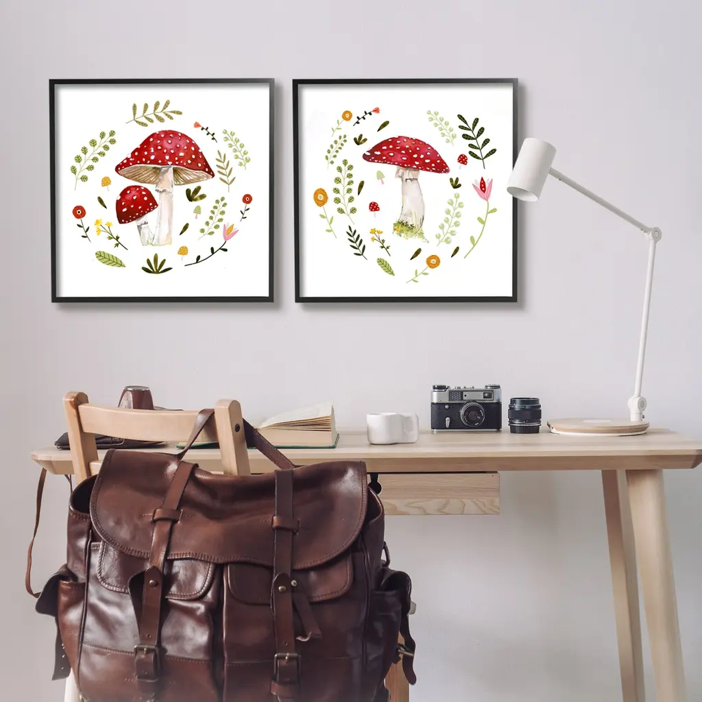 Fill any space in your home or office with our Framed Wall Art Sets. Our framed artwork is securely mounted into a 1.5-inch thick wood grain frame and ready to hang. Frames are available in three alluring styles: black, gray farmhouse and white. Stupell Wall Art is made in the USA.Features: Dimensions: 2 Piece Set, Each Panel is 12 x 1.5 x 12 FramedFramed Giclee Set Sizes Include Standard: 2pc, Each is 12 x 1.5 x 12 Large: 2pc, Each is 17 x 1.5 x 17 Oversized: 2pc, Each is 24 x 1.5 x 24Wall Art is Ready to Hang with Hardware Free Hanging. No installation required. For Easy Set Up Lean or Layer Artwork on Shelf or Against Wall.Curated Wall Art Sets make it easy for you complete the theme for any room. Our giclée prints are carefully mounted on a durable MDF backing, and then perfectly finished in a 1.5 inch thick woodgrain frame. Mounted frame colors include black, gray farmhouse and white. Made In USA.Artwork Relates To: Fungus, Plant, Pattern, Mushroom, Botanical, Floral, Herb, WoodlandDesign by Victoria Barnes