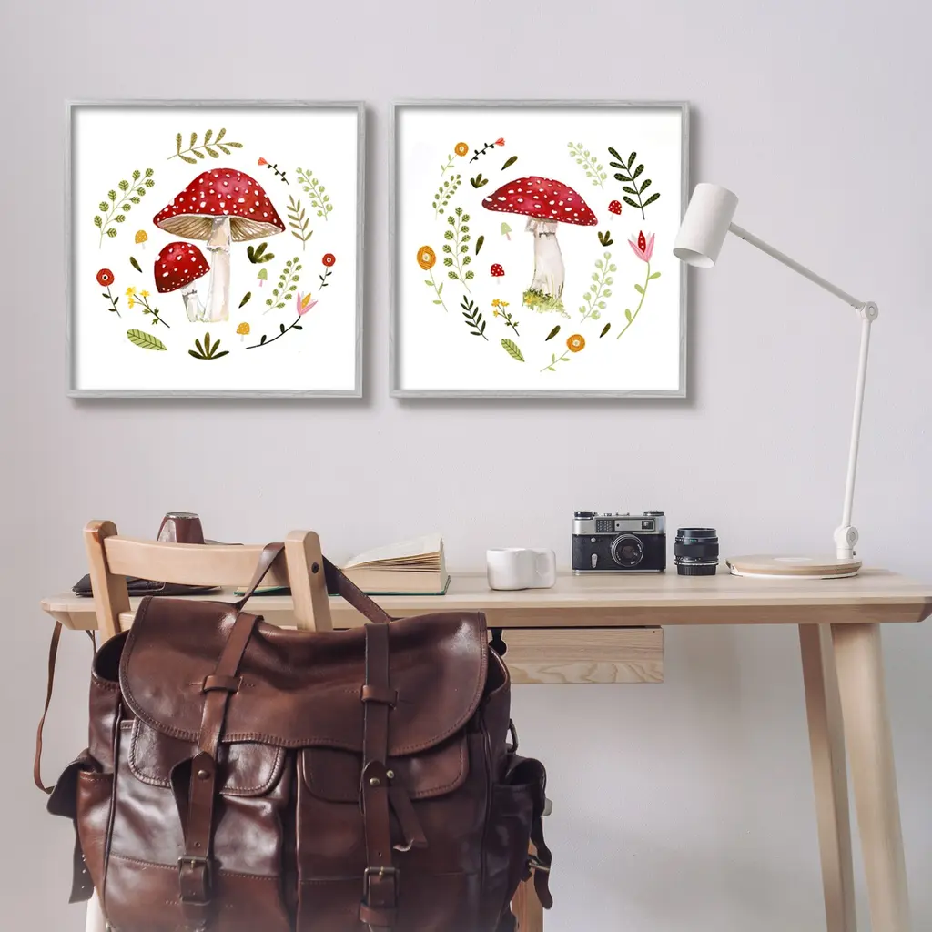 Fill any space in your home or office with our Framed Wall Art Sets. Our framed artwork is securely mounted into a 1.5-inch thick wood grain frame and ready to hang. Frames are available in three alluring styles: black, gray farmhouse and white. Stupell Wall Art is made in the USA.Features: Dimensions: 2 Piece Set, Each Panel is 12 x 1.5 x 12 FramedFramed Giclee Set Sizes Include Standard: 2pc, Each is 12 x 1.5 x 12 Large: 2pc, Each is 17 x 1.5 x 17 Oversized: 2pc, Each is 24 x 1.5 x 24Wall Art is Ready to Hang with Hardware Free Hanging. No installation required. For Easy Set Up Lean or Layer Artwork on Shelf or Against Wall.Curated Wall Art Sets make it easy for you complete the theme for any room. Our giclée prints are carefully mounted on a durable MDF backing, and then perfectly finished in a 1.5 inch thick woodgrain frame. Mounted frame colors include black, gray farmhouse and white. Made In USA.Artwork Relates To: Fungus, Plant, Pattern, Mushroom, Botanical, Floral, Herb, WoodlandDesign by Victoria Barnes