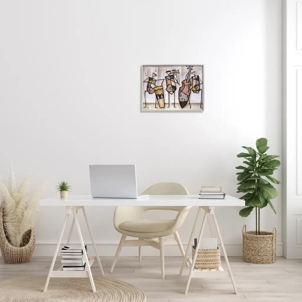 Stupell Musical Trio Abstract Modern Painting Black Framed Wall Art, Design By Artist Eric Waugh - Brown - 16 X 20 - Grey