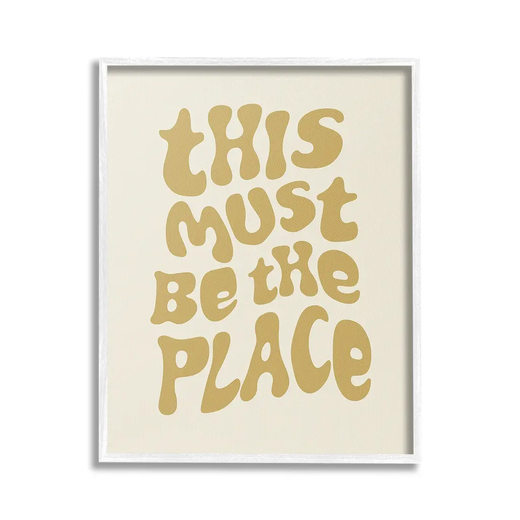 Elevate your home or office to the next level with Stupell Framed Floating Canvas Wall Art. Our premium hand-stretched canvas is mounted securely into a sturdy lightweight frame. The museum-style gap between the wrapped canvas and the box frame gives the illusion of floating artwork. Stupell Wall Art is made in the USA.Features: Dimensions: 17 x 1.7 x 21 Frame, 16 x 1.5 x 20 Canvas ArtFloating Frame Canvas Products are available in sizes 17"x21" and 25"x31". All Floating Frame Canvas Products have a 1.7" Depth.Wall Art is Ready to Hang with Hardware Free Hanging. No Installation required. For Easy Set Up Lean or Layer Artwork on Shelf or Against Wall. Artwork is Permently Fixed into the Frame.Our elevated 1.7" Thick Floating Frame is the perfect complement to our canvas style Wall Art. We use only the highest quality inks in house with industry leading printing solutions. Canvas is hand stretched over a durable wood foundation and then mounted securly into a Modern Box Frame. Made in the USA.Artwork Relates To: Phrase, Groovy, This Must Be The PlaceDesign by Victoria Barnes
