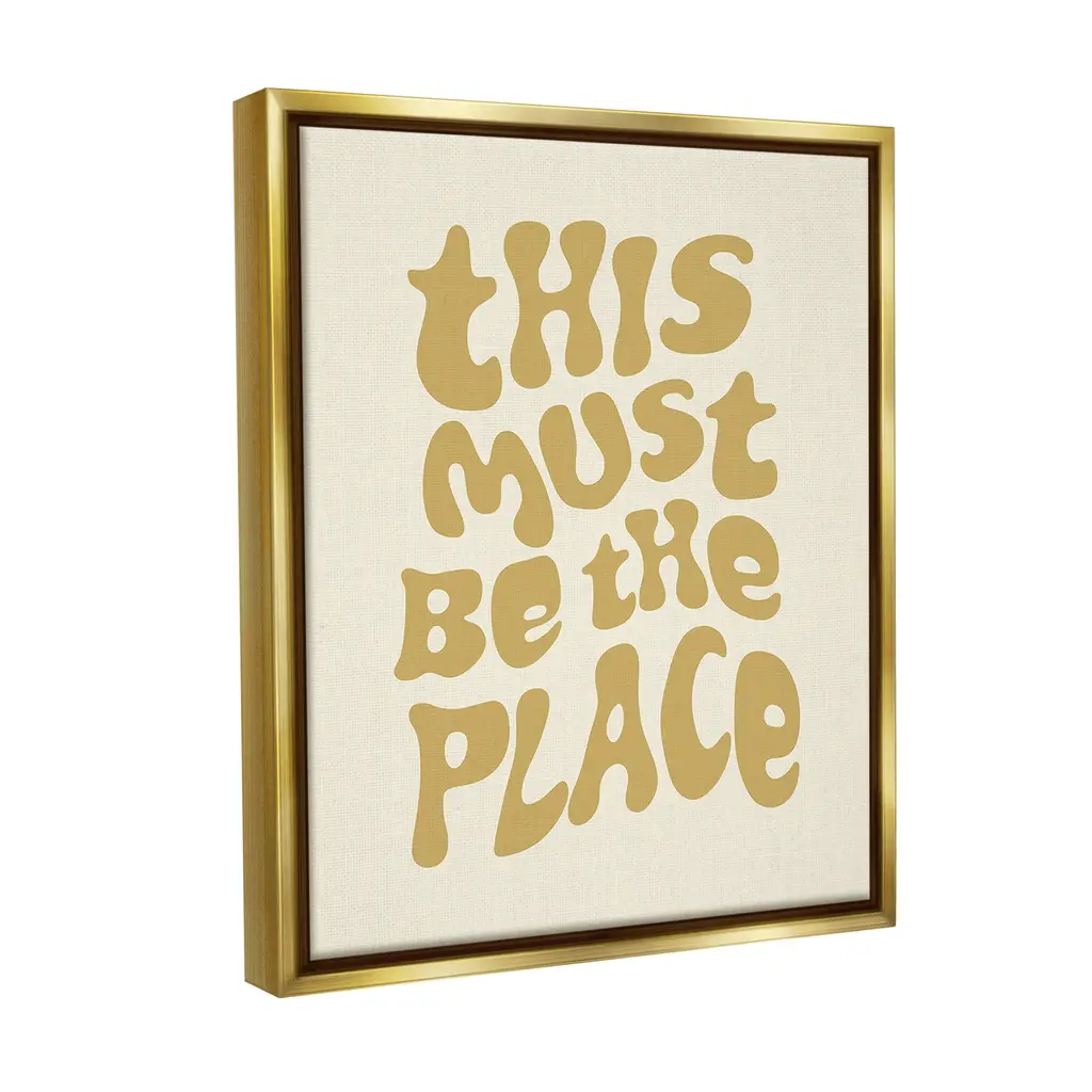 Elevate your home or office to the next level with Stupell Framed Floating Canvas Wall Art. Our premium hand-stretched canvas is mounted securely into a sturdy lightweight frame. The museum-style gap between the wrapped canvas and the box frame gives the illusion of floating artwork. Stupell Wall Art is made in the USA.Features: Dimensions: 17 x 1.7 x 21 Frame, 16 x 1.5 x 20 Canvas ArtFloating Frame Canvas Products are available in sizes 17"x21" and 25"x31". All Floating Frame Canvas Products have a 1.7" Depth.Wall Art is Ready to Hang with Hardware Free Hanging. No Installation required. For Easy Set Up Lean or Layer Artwork on Shelf or Against Wall. Artwork is Permently Fixed into the Frame.Our elevated 1.7" Thick Floating Frame is the perfect complement to our canvas style Wall Art. We use only the highest quality inks in house with industry leading printing solutions. Canvas is hand stretched over a durable wood foundation and then mounted securly into a Modern Box Frame. Made in the USA.Artwork Relates To: Phrase, Groovy, This Must Be The PlaceDesign by Victoria Barnes