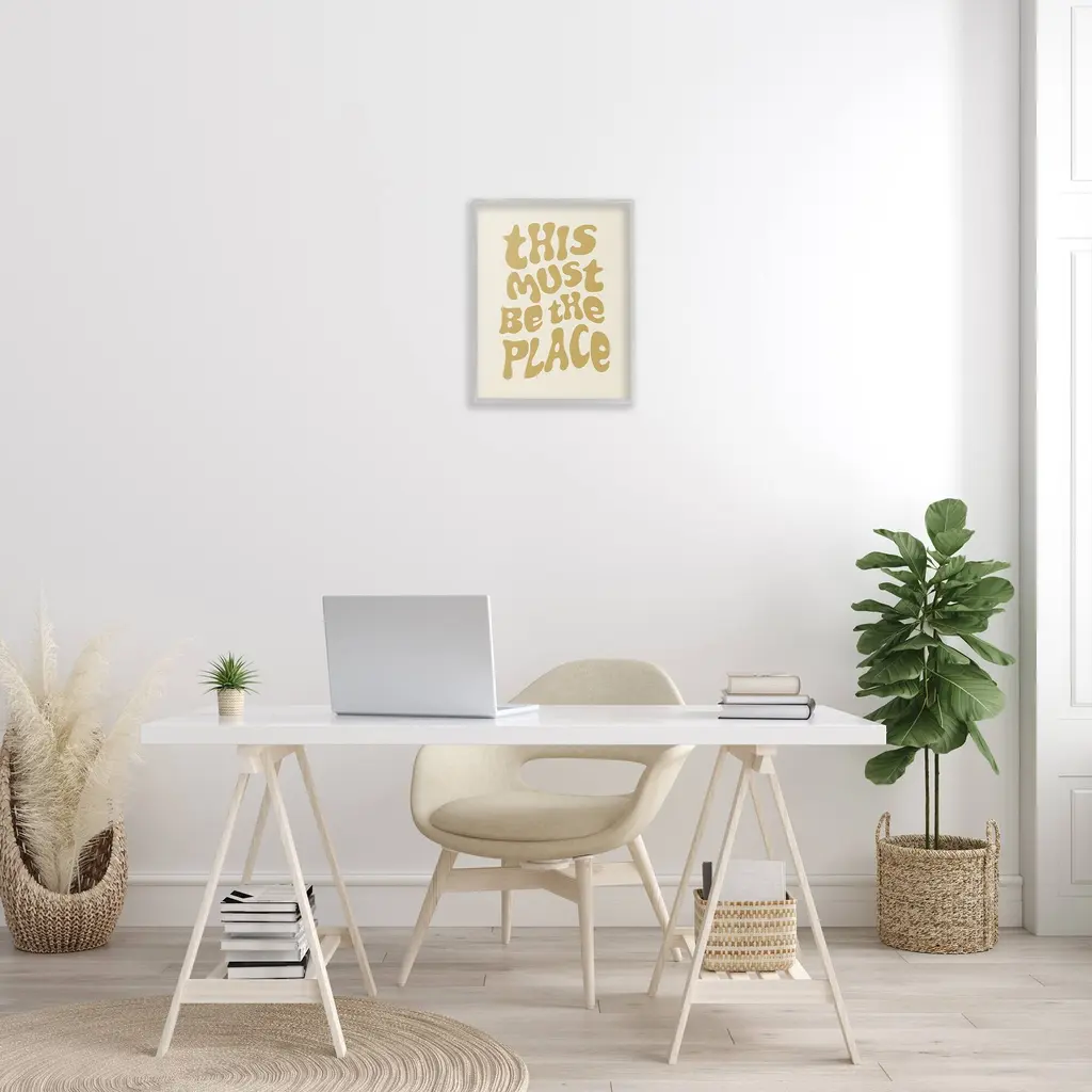 Add dimension to any room with our textured Framed Giclee Artwork. Our framed artwork is securely mounted into a 1.5-inch thick wood grain frame and ready to hang. Frames are available in three alluring styles: black, gray farmhouse and white. In addition, you should check out our oversized options if you want a statement piece. Stupell Wall Art is made in the USA.Features: Dimensions: 11 x 1.5 x 14 FramedFramed Giclee Products are available in the sizes 11"x14", 16"x20" or 24"x30". All Framed Giclee Products have a 1.5" Depth. Wall Art is Ready to Hang with Hardware Free Hanging. No installation required. For Easy Set Up Lean or Layer Artwork on Shelf or Against Wall.Our giclée prints are carefully mounted on a durable MDF backing, and then perfectly finished in a 1.5 inch thick woodgrain frame. Mounted frame colors include black, gray farmhouse and white. Made In USA.Artwork Relates To: Phrase, Groovy, This Must Be The PlaceDesign by Victoria Barnes