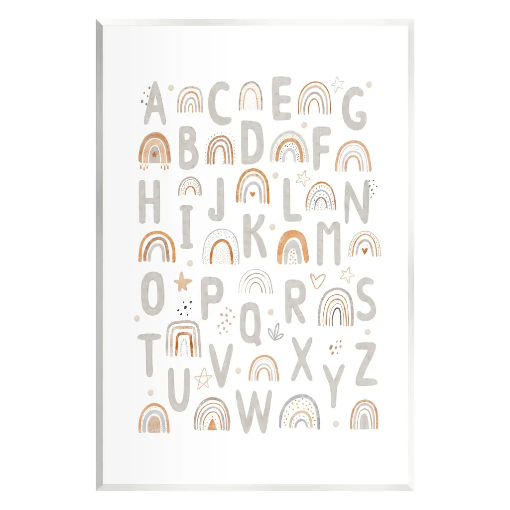 Our wall plaques start as high-quality lithograph prints mounted on durable 0.5-inch thick MDF wood. Each piece is hand finished and comes with a fresh layer of white foil on the sides to give it a crisp, clean look. Plaques arrive ready to hang without installation and come with removable plastic corners to keep them from damage in transit. Stupell Wall Art is made in the USA.Features: Dimensions: 10 x 0.5 x 15 InchesWall Plaque Sizes Include Standard: 10 x 0.5 x 15 Oversized: 13 x 0.5 x 19Wall Art is Ready to Hang with Hardware Free Hanging. No installation required. For Easy Set Up Lean or Layer Artwork on Shelf or Against Wall.All of our wall plaques start off as high quality lithograph prints that are then mounted on durable 0.5 inch thick MDF wood. Each piece is hand finished and comes with a fresh layer of foil on the sides to give it a crisp clean look. Made In USA.Artwork Relates To: Alphabet, Letters, Stars, Rainbow, Muted Tones, Design by LSR Design Studio