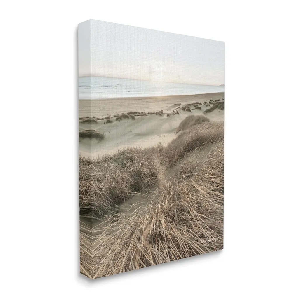 Stupell Muted Beach Sunrise Tall Grass Soft Sand Dunes Canvas Wall Art - White - 36 X 48