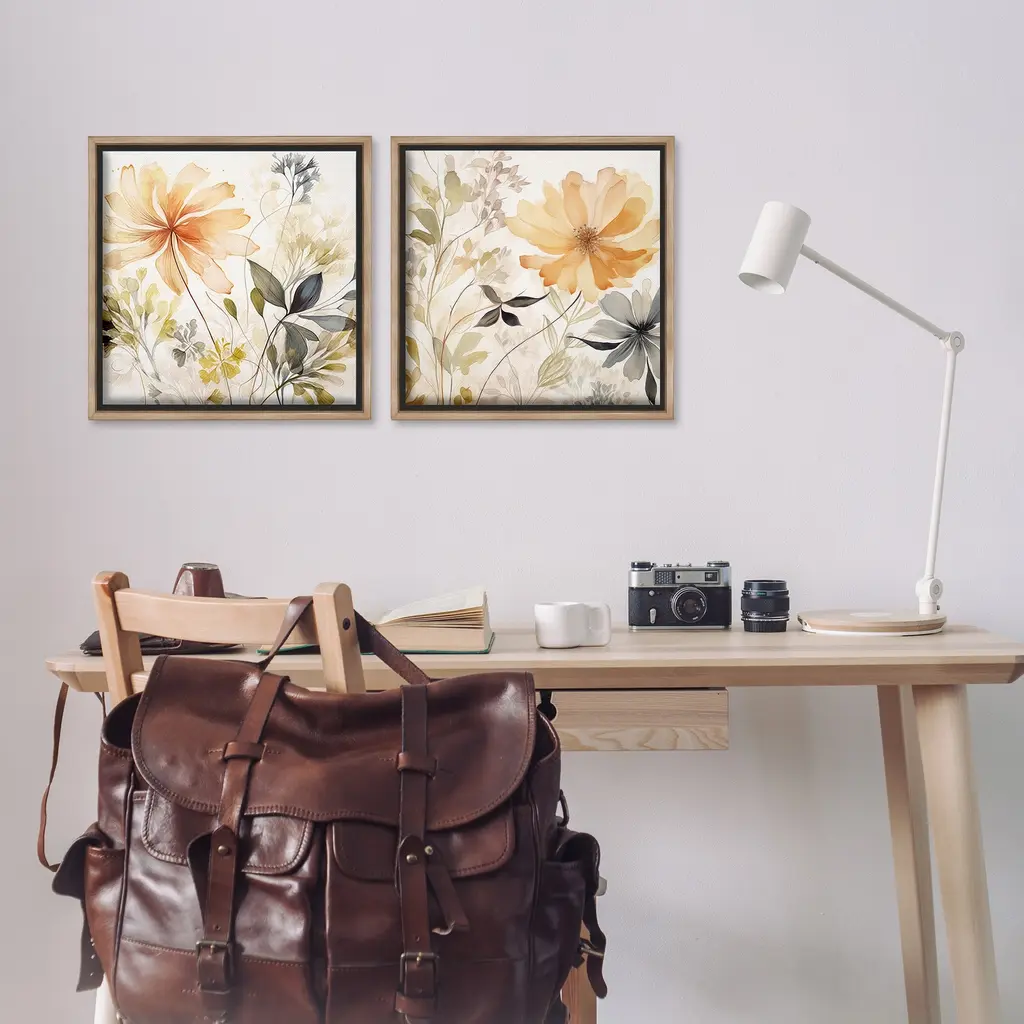 Elevate your home or office to the next level with Stupell Framed Floating Canvas Wall Art. Our premium hand-stretched canvas is mounted securely into a sturdy lightweight frame. The museum-style gap between the wrapped canvas and the box frame gives the illusion of floating artwork. Stupell Wall Art is made in the USA.Features: Dimensions: 2 Piece Set, Each Frame is 18 x 1.7 x 18Two Piece Floating Frame Canvas Products are available as 18"x18" or 25"x25" Panels. All Floating Frame Canvas Products have a 1.7" Depth.Wall Art is Ready to Hang with Hardware Free Hanging. No Installation required. For Easy Set Up Lean or Layer Artwork on Shelf or Against Wall. Artwork is Permently Fixed into the Frame.Our elevated 1.7" Thick Floating Frame is the perfect complement to our canvas style Wall Art. We use only the highest quality inks in house with industry leading printing solutions. Canvas is hand stretched over a durable wood foundation and then mounted securly into a Modern Box Frame. Made in the USA.Artwork Relates To: Floral, Pattern, Flower, Petal, Plant, Vintage, Botanical, BouquetDesign by Lazar Studio