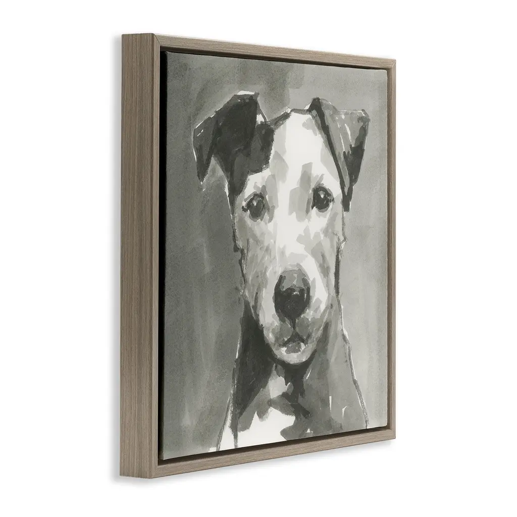 Elevate your home or office to the next level with Stupell Framed Floating Canvas Wall Art. Our premium hand-stretched canvas is mounted securely into a sturdy lightweight frame. The museum-style gap between the wrapped canvas and the box frame gives the illusion of floating artwork. Stupell Wall Art is made in the USA.Features: Dimensions: 18 x 1.7 x 18 Frame, 17 x 1.5 x 17 Canvas ArtFloating Frame Canvas Products are available in sizes 18"x18" and 25"x25". All Floating Frame Canvas Products have a 1.7" Depth.Wall Art is Ready to Hang with Hardware Free Hanging. No Installation required. For Easy Set Up Lean or Layer Artwork on Shelf or Against Wall. Artwork is Permently Fixed into the Frame.Our elevated 1.7" Thick Floating Frame is the perfect complement to our canvas style Wall Art. We use only the highest quality inks in house with industry leading printing solutions. Canvas is hand stretched over a durable wood foundation and then mounted securly into a Modern Box Frame. Made in the USA.Artwork Relates To: Animal, Pet, Dog, Portrait, Monochrome, Jack russell terrierDesign by Cartissi