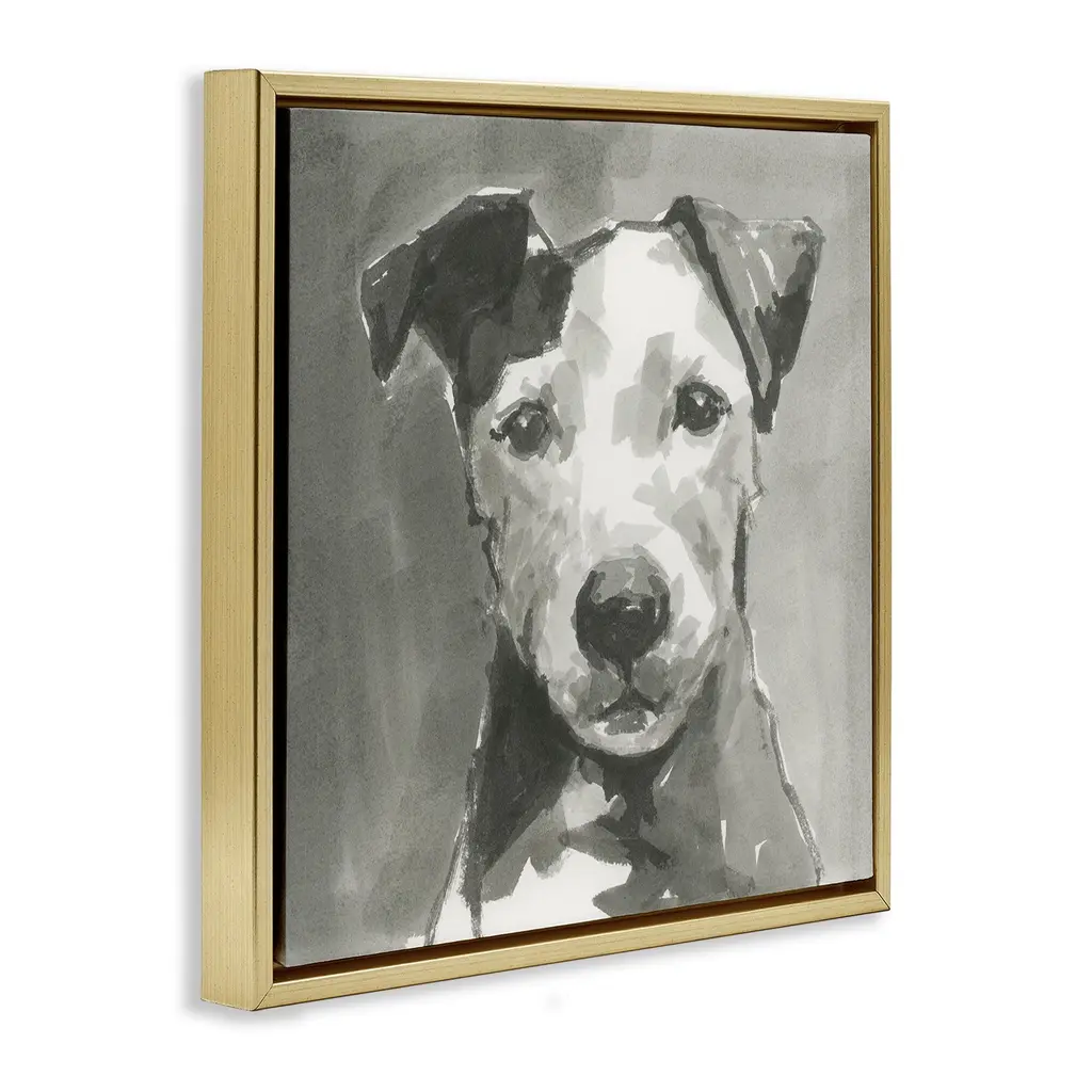 Elevate your home or office to the next level with Stupell Framed Floating Canvas Wall Art. Our premium hand-stretched canvas is mounted securely into a sturdy lightweight frame. The museum-style gap between the wrapped canvas and the box frame gives the illusion of floating artwork. Stupell Wall Art is made in the USA.Features: Dimensions: 18 x 1.7 x 18 Frame, 17 x 1.5 x 17 Canvas ArtFloating Frame Canvas Products are available in sizes 18"x18" and 25"x25". All Floating Frame Canvas Products have a 1.7" Depth.Wall Art is Ready to Hang with Hardware Free Hanging. No Installation required. For Easy Set Up Lean or Layer Artwork on Shelf or Against Wall. Artwork is Permently Fixed into the Frame.Our elevated 1.7" Thick Floating Frame is the perfect complement to our canvas style Wall Art. We use only the highest quality inks in house with industry leading printing solutions. Canvas is hand stretched over a durable wood foundation and then mounted securly into a Modern Box Frame. Made in the USA.Artwork Relates To: Animal, Pet, Dog, Portrait, Monochrome, Jack russell terrierDesign by Cartissi
