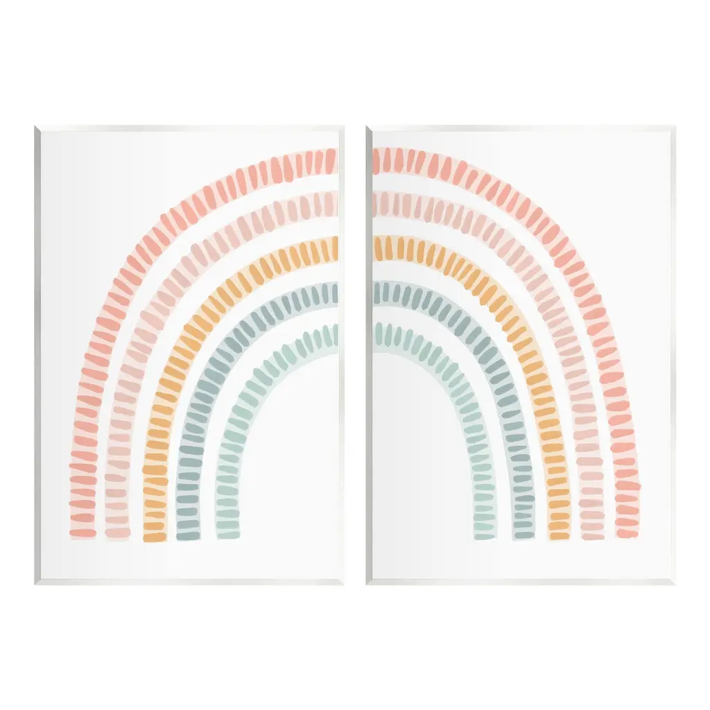 Our wall plaques start as high-quality lithograph prints mounted on durable 0.5-inch thick MDF wood. Each piece is hand finished and comes with a fresh layer of white foil on the sides to give it a crisp, clean look. Plaques arrive ready to hang without installation and come with removable plastic corners to keep them from damage in transit. Stupell Wall Art is made in the USA.Features: Dimensions: 10 x 0.5 x 15 InchesWall Plaque Sizes Include Standard: 10 x 0.5 x 15 Oversized: 13 x 0.5 x 19Wall Art is Ready to Hang with Hardware Free Hanging. No installation required. For Easy Set Up Lean or Layer Artwork on Shelf or Against Wall.All of our wall plaques start off as high quality lithograph prints that are then mounted on durable 0.5 inch thick MDF wood. Each piece is hand finished and comes with a fresh layer of foil on the sides to give it a crisp clean look. Made In USA.Artwork Relates To: Rainbows, Hearts, Pastel, Arch, Stars, PatternDesign by LSR Design Studio