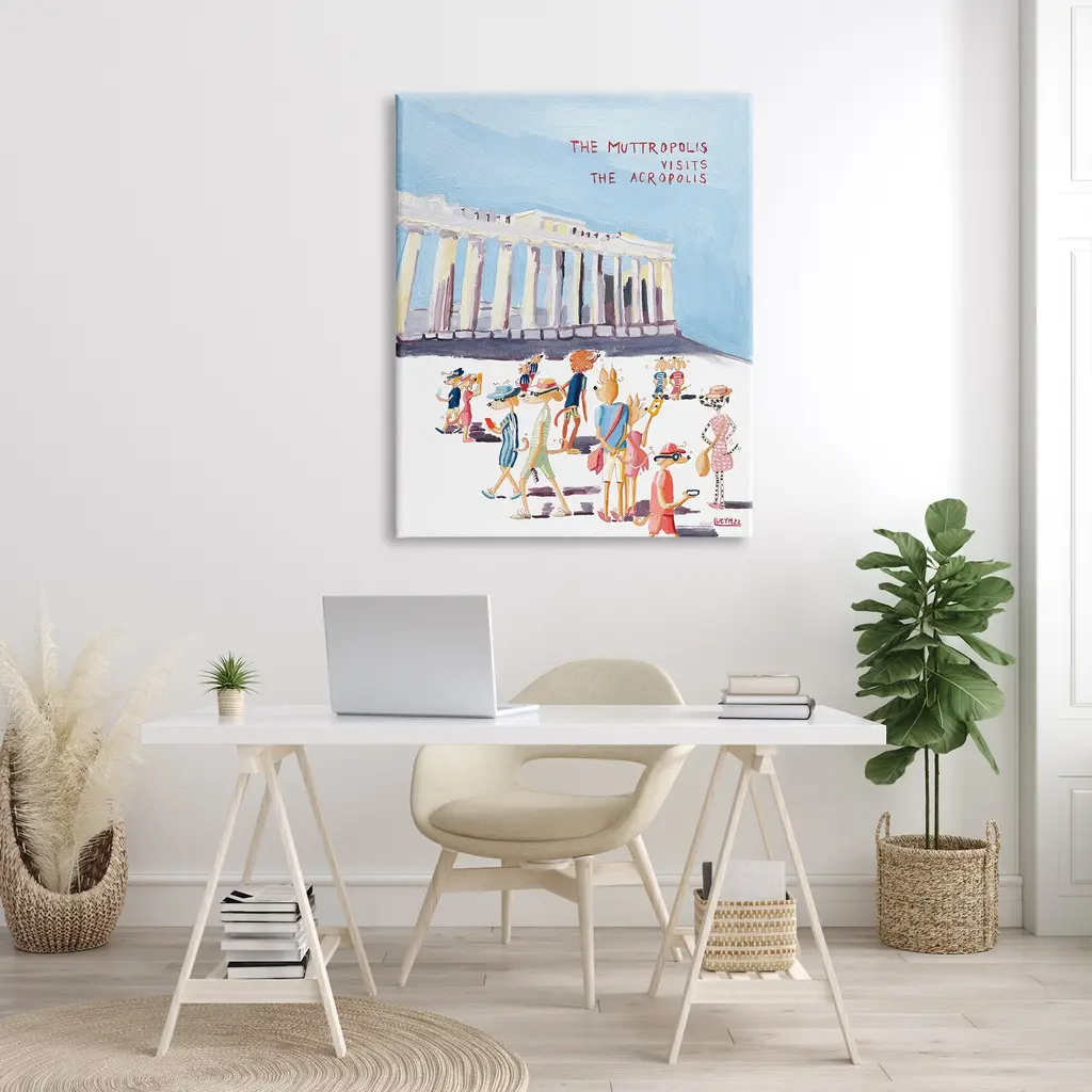Stupell Muttropolis Visits Acropolis Funny Canvas Wall Art By Lucy Marshall - 16 X 20