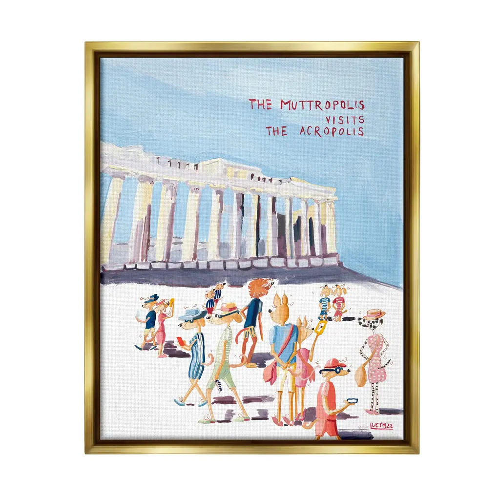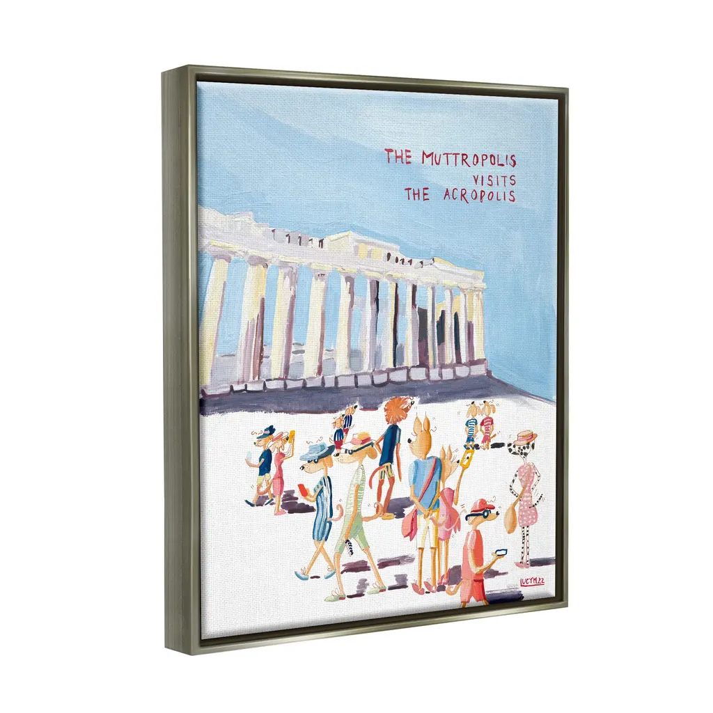 Stupell Muttropolis Visits Acropolis Funny Framed Floater Canvas Wall Art By Lucy Marshall - 24 X 30 - Grey
