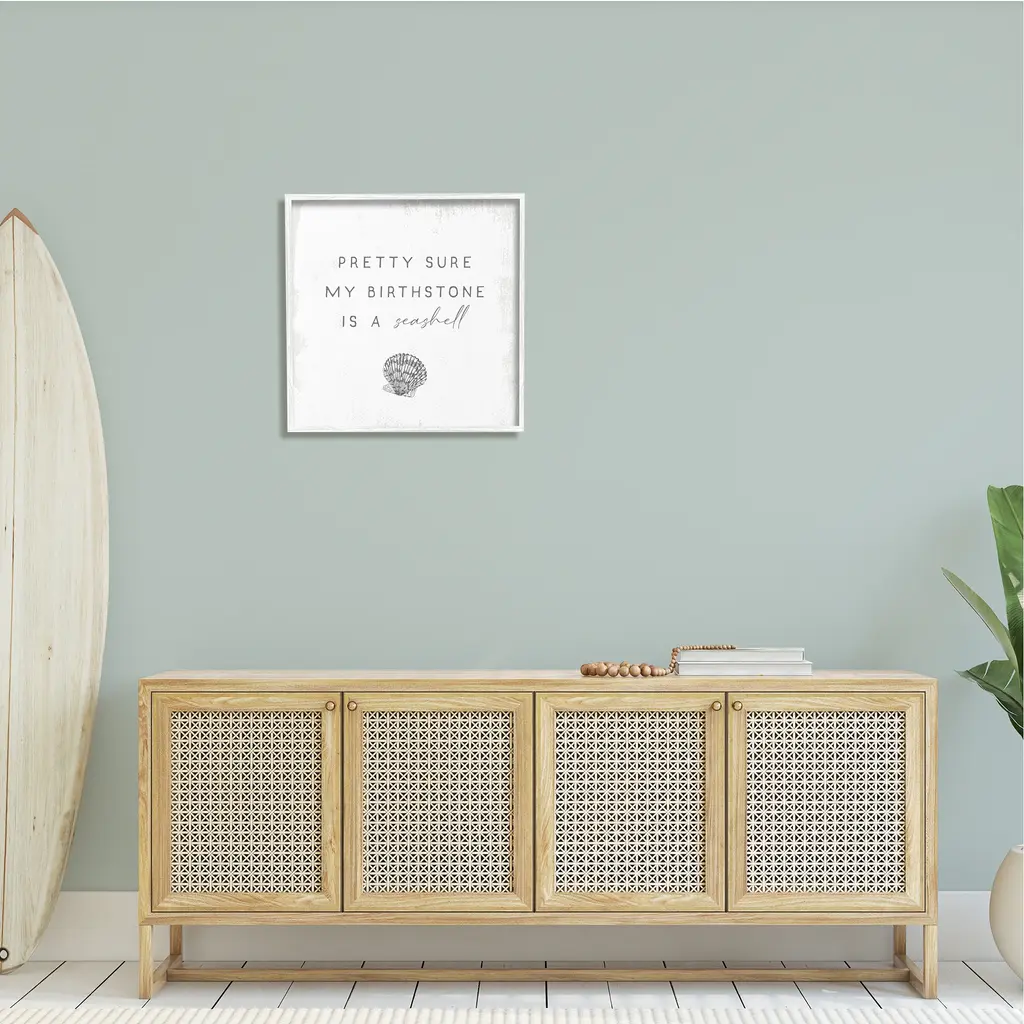 Stupell My Birthstone Is Seashell Vintage Inspirational Saying Framed Wall Art, Design By Daphne Polselli - Grey - 24 X 24 - Grey