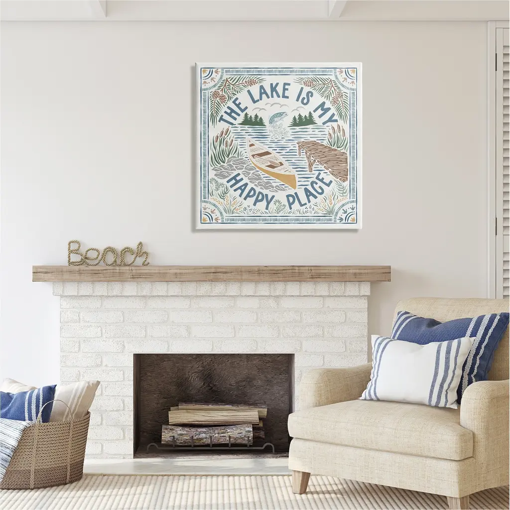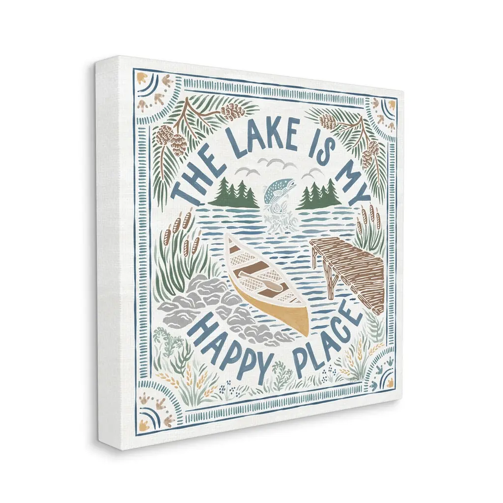 We create our stretched canvas to the highest standards. Using only the highest quality inks and canvas on Mimaki printers, we hand-cut and stretch each piece over a 1.5-inch thick wooden frame for hanging. As a result, the art comes ready to hang on the sturdy ledge with no installation required. Stupell Wall Art is made in the USA.Features: Dimensions: 17 x 1.5 x 17 InchesStretched Canvas Sizes Include Standard: 17 x 1.5 x 17 Large: 24 x 1.5 x 24 X-Large: 30 x 1.5 x 30 Oversized: 36 x 1.5 x 36Wall Art is Ready to Hang with Hardware Free Hanging. No installation required. For Easy Set Up Lean or Layer Artwork on Shelf or Against Wall.Our stretched canvas is created with the highest standards. We use only the highest quality inks and canvas on our in house Mimaki printers, and then hand cut and stretch each piece over a 1.5 inch thick wooden frame for hanging. Made In USA.Artwork Relates To: Lake, Mountain, Nature, Cabin, Duck, Botanical, Plants, Canoe, The Lake is my Happy PlaceDesign by Laura Marshall