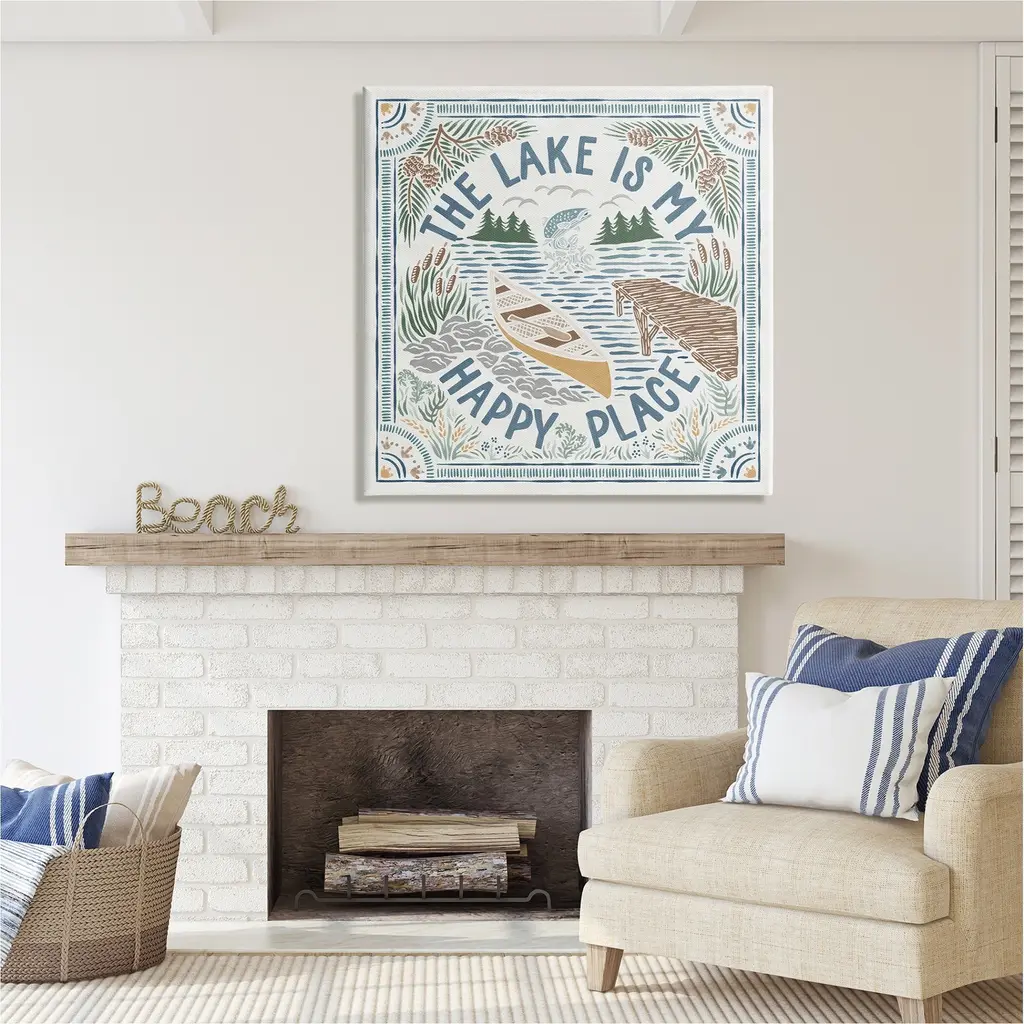 Stupell My Happy Place Lake Phrase Canvas Wall Art Design By Laura Marshall - 36 X 36