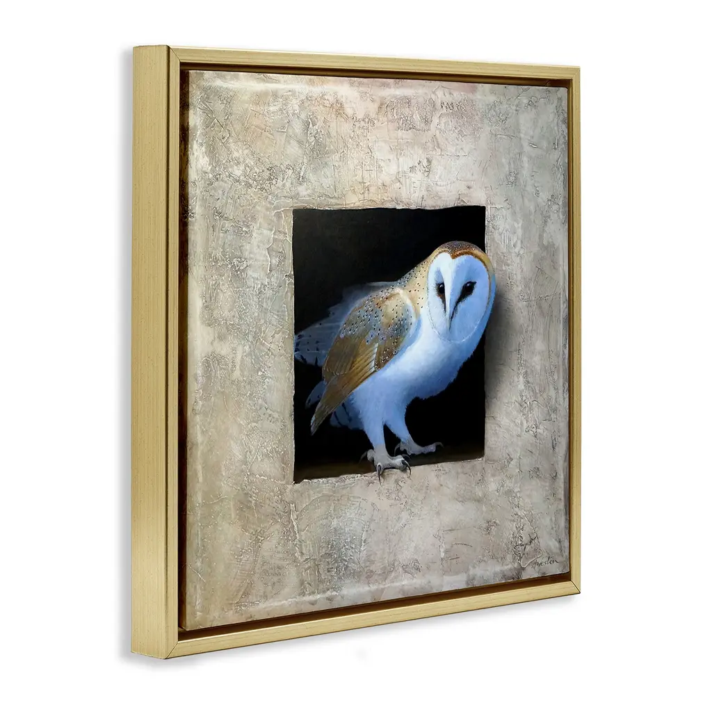 Stupell Mysterious Barn Owl Peering Framed Floater Canvas Wall Art Design By Alan Weston - 25 X 25 - Gold