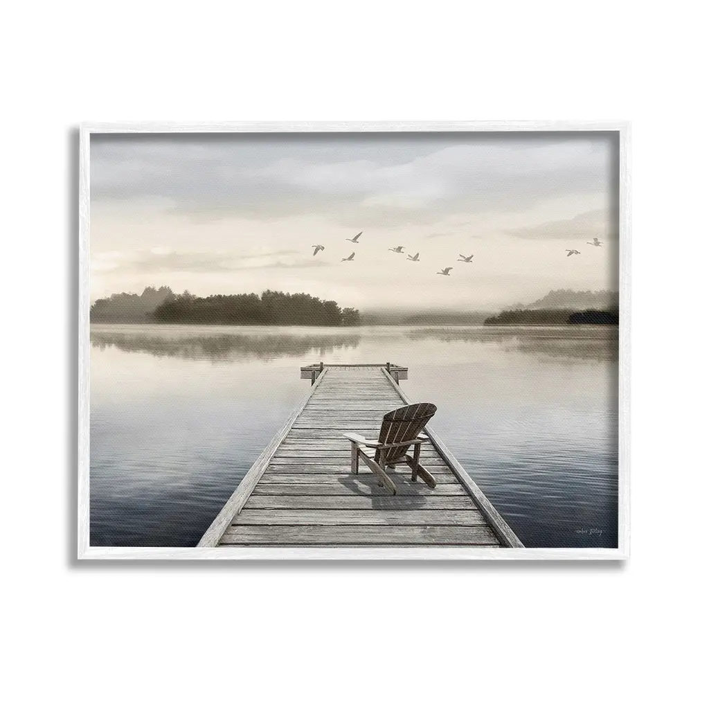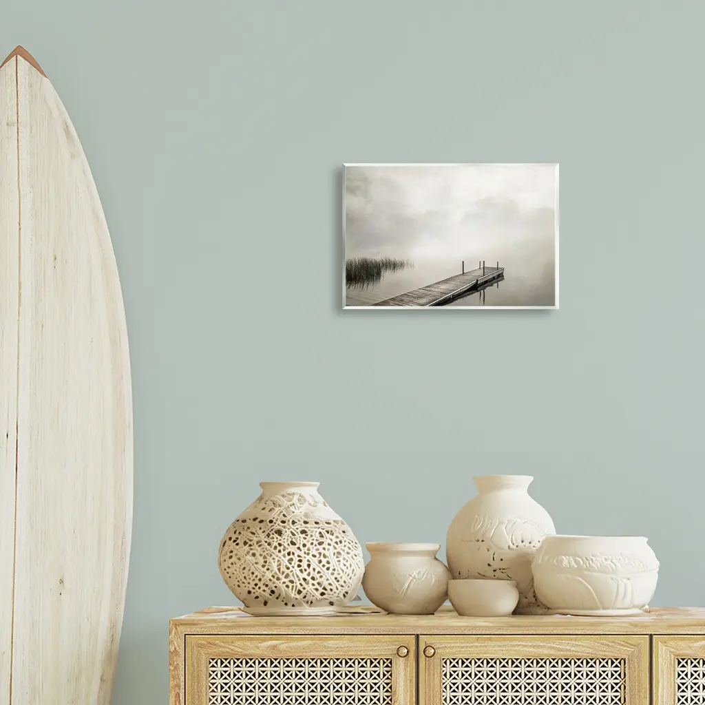 Our wall plaques start as high-quality lithograph prints mounted on durable 0.5-inch thick MDF wood. Each piece is hand finished and comes with a fresh layer of white foil on the sides to give it a crisp, clean look. Plaques arrive ready to hang without installation and come with removable plastic corners to keep them from damage in transit. Stupell Wall Art is made in the USA.Features: Dimensions: 15 x 0.5 x 10 InchesWall Plaque Product Sizes Include 15"x10" and 19"x13". All wall plaque products have a 0.5" Depth. Wall Art is Ready to Hang with Hardware Free Hanging. No installation required. For Easy Set Up Lean or Layer Artwork on Shelf or Against Wall.All of our wall plaques start off as high quality lithograph prints that are then mounted on durable 0.5 inch thick MDF wood. Each piece is hand finished and comes with a fresh layer of foil on the sides to give it a crisp clean look. Made In USA.Artwork Relates To: Lake, Ocean, Sea, Dock, Fog, MistDesign by Peter Hawkins