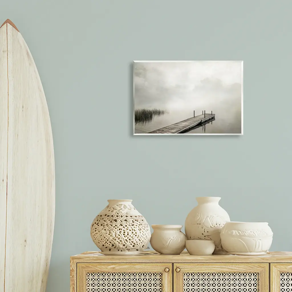 Our wall plaques start as high-quality lithograph prints mounted on durable 0.5-inch thick MDF wood. Each piece is hand finished and comes with a fresh layer of white foil on the sides to give it a crisp, clean look. Plaques arrive ready to hang without installation and come with removable plastic corners to keep them from damage in transit. Stupell Wall Art is made in the USA.Features: Dimensions: 15 x 0.5 x 10 InchesWall Plaque Product Sizes Include 15"x10" and 19"x13". All wall plaque products have a 0.5" Depth. Wall Art is Ready to Hang with Hardware Free Hanging. No installation required. For Easy Set Up Lean or Layer Artwork on Shelf or Against Wall.All of our wall plaques start off as high quality lithograph prints that are then mounted on durable 0.5 inch thick MDF wood. Each piece is hand finished and comes with a fresh layer of foil on the sides to give it a crisp clean look. Made In USA.Artwork Relates To: Lake, Ocean, Sea, Dock, Fog, MistDesign by Peter Hawkins