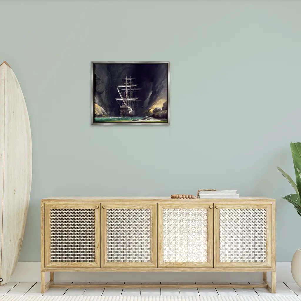 Stupell Mysterious Ship In Cave Framed Floater Canvas Wall Art Design By Vlad Mel - 31 X 25 - Grey