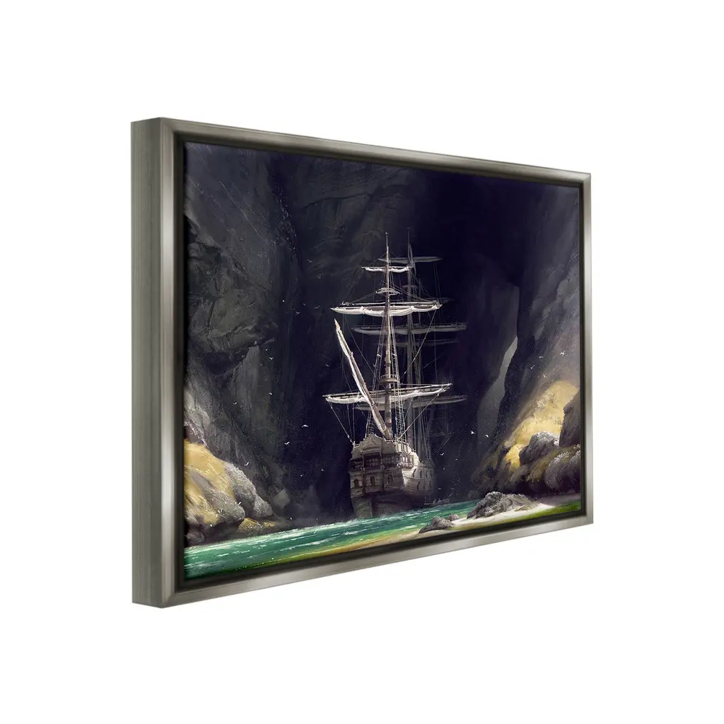 Elevate your home or office to the next level with Stupell Framed Floating Canvas Wall Art. Our premium hand-stretched canvas is mounted securely into a sturdy lightweight frame. The museum-style gap between the wrapped canvas and the box frame gives the illusion of floating artwork. Stupell Wall Art is made in the USA.Features: Dimensions: 21 x 1.7 x 17 Frame, 20 x 1.5 x 16 Canvas ArtFloating Frame Canvas Products are available in sizes 21"x17" and 31"x25". All Floating Frame Canvas Products have a 1.7" Depth.Wall Art is Ready to Hang with Hardware Free Hanging. No Installation required. For Easy Set Up Lean or Layer Artwork on Shelf or Against Wall. Artwork is Permently Fixed into the Frame.Our elevated 1.7" Thick Floating Frame is the perfect complement to our canvas style Wall Art. We use only the highest quality inks in house with industry leading printing solutions. Canvas is hand stretched over a durable wood foundation and then mounted securly into a Modern Box Frame. Made in the USA.Artwork Relates To: Boat, Sailboat, Water, Sea, Ship, Cave, Scenery, Rock, Landscape, Yacht, Surreal, Beach, Nautical, MaritimeDesign by Vlad Mel