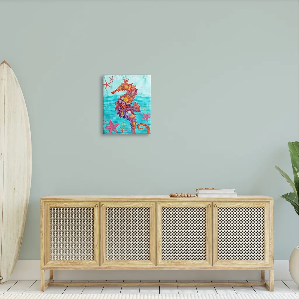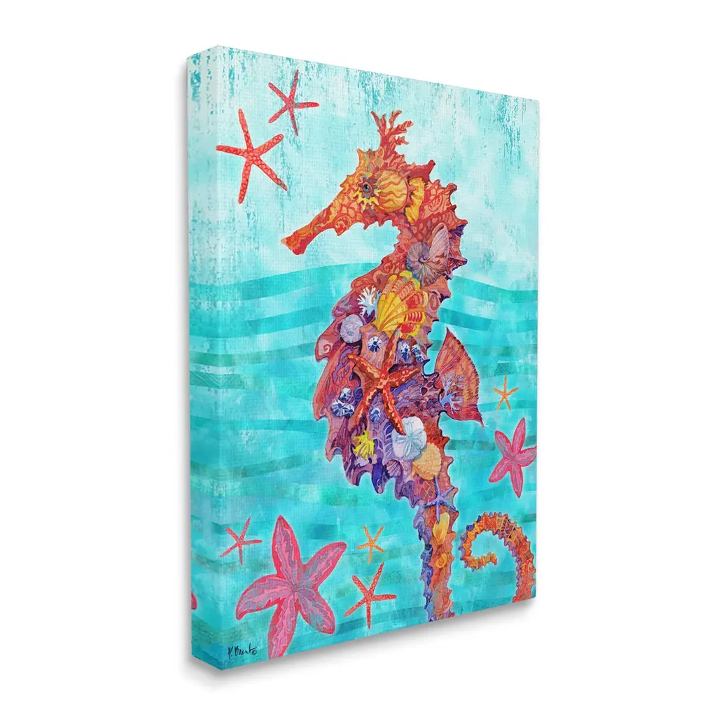 Proudly made in the USA, Our stretched canvas is created with the highest standards. We use only the highest quality inks and canvas on our in house Mimaki printers, and then hand cut and stretch each piece over a 1.5 inch thick wooden frame for hanging. The art comes ready to hang with no installation required. Not to mention, at this size, it is sure to be the focal point of any room!Features:Stretched Canvas Sizes IncludeStandard: 16 x 1.5 x 20Large: 20 x 1.5 x 30X-Large: 30 x 1.5 x 40Oversized: 36 x 1.5 x 48Wall Art is Ready to Hang - No Installation or Hardware Needed. For Easy Set Up Lean or Layer Artwork on Shelf or Against Wall.Artwork Relates To: Painting, Sea Life, Animal, Water, Seahorse, Ocean, Aquatic, Marine, Seashells, Pattern, Stripes, StarfishOur stretched canvas is created with the highest standards. We use only the highest quality inks and canvas on our in house Mimaki printers, and then hand cut and stretch each piece over a 1.5 inch thick wooden frame for hanging. Made In USA.Design by Paul Brent