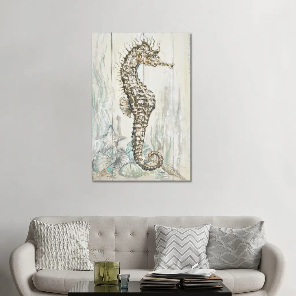 Proudly made in the USA, Our stretched canvas is created with the highest standards. We use only the highest quality inks and canvas on our in house Mimaki printers, and then hand cut and stretch each piece over a 1.5 inch thick wooden frame for hanging. The art comes ready to hang with no installation required. Not to mention, at this size, it is sure to be the focal point of any room!Features:Stretched Canvas Sizes IncludeStandard: 16 x 1.5 x 20Large: 20 x 1.5 x 30X-Large: 30 x 1.5 x 40Oversized: 36 x 1.5 x 48Wall Art is Ready to Hang - No Installation or Hardware Needed. For Easy Set Up Lean or Layer Artwork on Shelf or Against Wall.Artwork Relates To: Painting, Sea Life, Animal, Water, Seahorse, Ocean, Aquatic, Marine, Seashells, Pattern, Stripes, StarfishOur stretched canvas is created with the highest standards. We use only the highest quality inks and canvas on our in house Mimaki printers, and then hand cut and stretch each piece over a 1.5 inch thick wooden frame for hanging. Made In USA.Design by Paul Brent