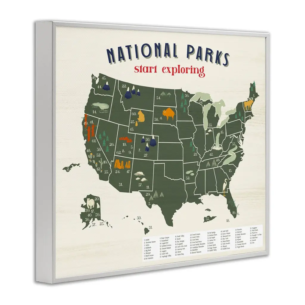 Stupell National Parks Map With Numbered Key United States Framed Wall Art - Green - 16 X 20 - White