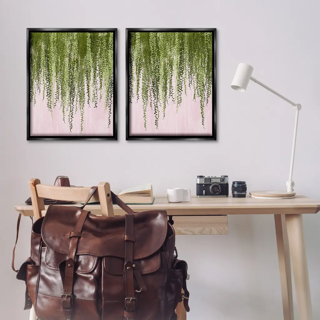 Elevate your home or office to the next level with Stupell Framed Floating Canvas Wall Art. Our premium hand-stretched canvas is mounted securely into a sturdy lightweight frame. The museum-style gap between the wrapped canvas and the box frame gives the illusion of floating artwork. Stupell Wall Art is made in the USA.Features: Dimensions: 2 Piece Set, Each Frame is 17 x 1.7 x 21Two Piece Floater Framed Canvas are available as 17x21 or 25x31 Panels. All Floater Frame Products have a 1.7" Depth.Wall Art is Ready to Hang with Hardware Free Hanging. No Installation required. For Easy Set Up Lean or Layer Artwork on Shelf or Against Wall. Artwork is Permently Fixed into the Frame.Our elevated 1.7" Thick Floating Frame is the perfect complement to our canvas style Wall Art. We use only the highest quality inks in house with industry leading printing solutions. Canvas is hand stretched over a durable wood foundation and then mounted securly into a Modern Box Frame. Made in the USA.Artwork Relates To: Plant, Vine, Tree, Leaf, Vegetation, Willow, Ivy, BotanicalDesign by Grace Popp