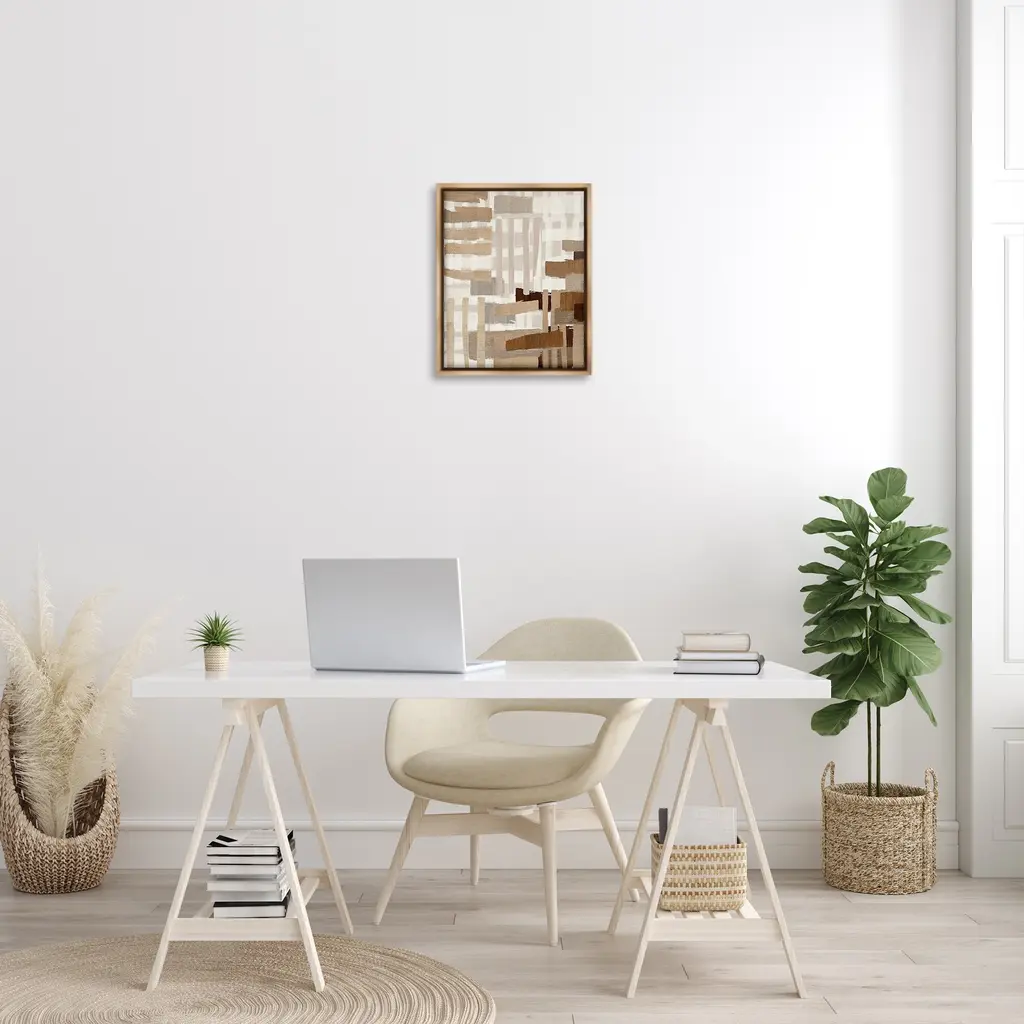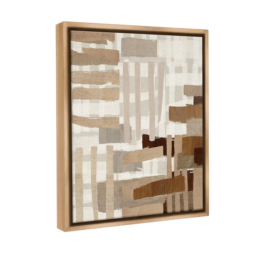 Elevate your home or office to the next level with Stupell Framed Floating Canvas Wall Art. Our premium hand-stretched canvas is mounted securely into a sturdy lightweight frame. The museum-style gap between the wrapped canvas and the box frame gives the illusion of floating artwork. Stupell Wall Art is made in the USA.Features: Dimensions: 17 x 1.7 x 21 Frame, 16 x 1.5 x 20 Canvas ArtFloating Frame Canvas Products are available in sizes 17"x21" and 25"x31". All Floating Frame Canvas Products have a 1.7" Depth.Wall Art is Ready to Hang with Hardware Free Hanging. No Installation required. For Easy Set Up Lean or Layer Artwork on Shelf or Against Wall. Artwork is Permently Fixed into the Frame.Our elevated 1.7" Thick Floating Frame is the perfect complement to our canvas style Wall Art. We use only the highest quality inks in house with industry leading printing solutions. Canvas is hand stretched over a durable wood foundation and then mounted securly into a Modern Box Frame. Made in the USA.Artwork Relates To: Abstract, Neutral, Desert, Southwestern, Beige, Brown, Pattern, Stripes, GeometricDesign by Amber Sterling