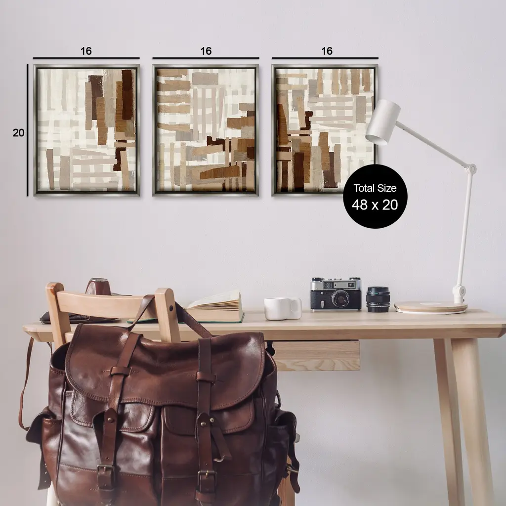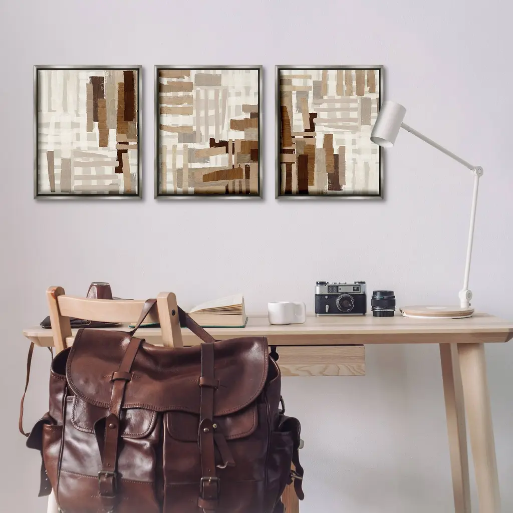 Elevate your home or office to the next level with Stupell Framed Floating Canvas Wall Art. Our premium hand-stretched canvas is mounted securely into a sturdy lightweight frame. The museum-style gap between the wrapped canvas and the box frame gives the illusion of floating artwork. Stupell Wall Art is made in the USA.Features: Dimensions: 3 Piece Set, Each Frame is 17 x 1.7 x 21Three Piece Floater Framed Canvas are available as 17x21 or 25x31 Panels. All Floater Frame Products have a 1.7" Depth.Wall Art is Ready to Hang with Hardware Free Hanging. No Installation required. For Easy Set Up Lean or Layer Artwork on Shelf or Against Wall. Artwork is Permently Fixed into the Frame.Our elevated 1.7" Thick Floating Frame is the perfect complement to our canvas style Wall Art. We use only the highest quality inks in house with industry leading printing solutions. Canvas is hand stretched over a durable wood foundation and then mounted securly into a Modern Box Frame. Made in the USA.Artwork Relates To: Abstract, Modern, Pattern, Rustic, NaturalDesign by Amber Sterling