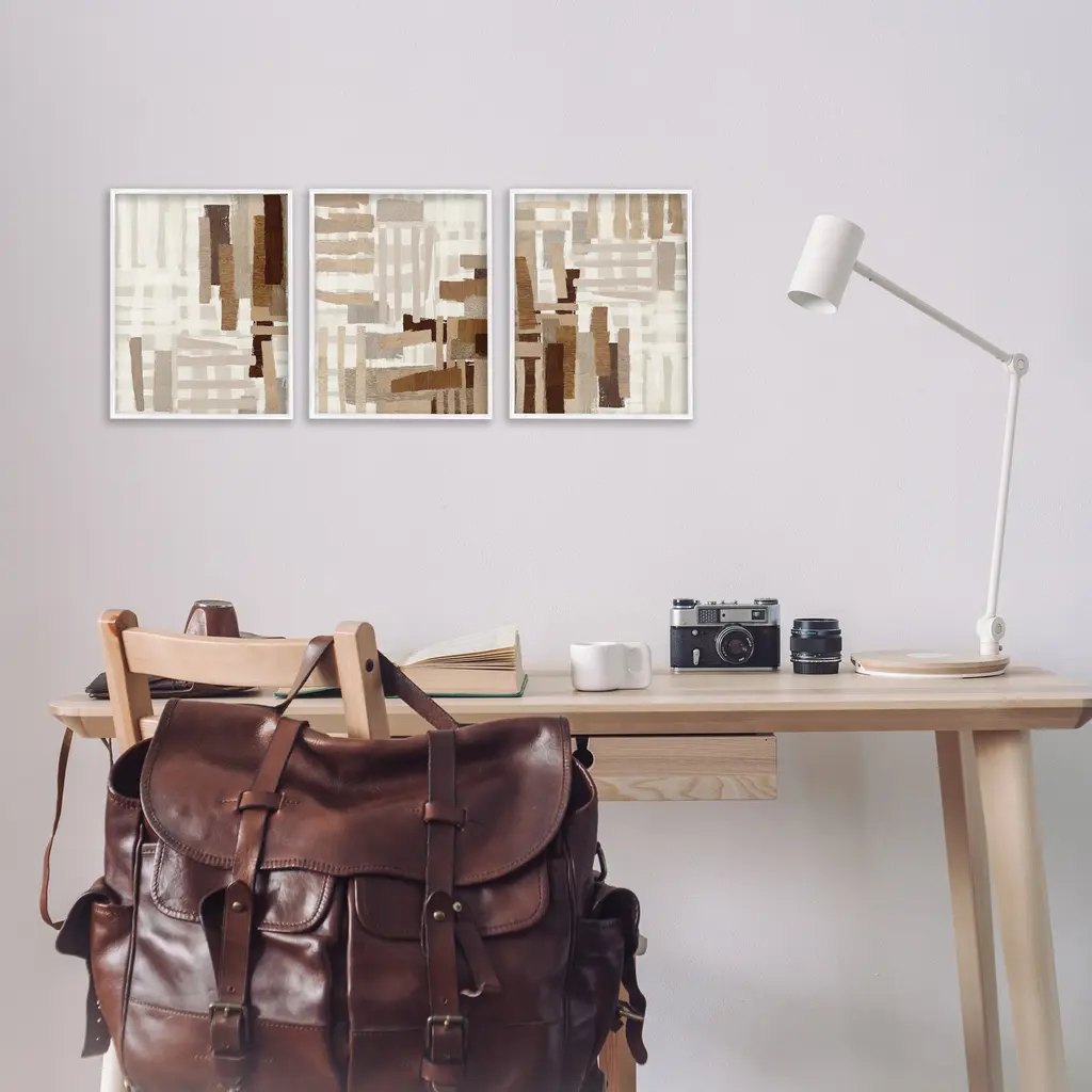 Fill any space in your home or office with our Framed Wall Art Sets. Our framed artwork is securely mounted into a 1.5-inch thick wood grain frame and ready to hang. Frames are available in three alluring styles: black, gray farmhouse and white. Stupell Wall Art is made in the USA.Features: Dimensions: 3 Piece Set, Each Panel is 11 x 1.5 x 14 FramedThree Piece Framed Giclee Sets are availabel as 11"x14", 16"x20", or 24"x30" Panels. All Framed Giclee Products have a 1.5" Depth.Wall Art is Ready to Hang with Hardware Free Hanging. No installation required. For Easy Set Up Lean or Layer Artwork on Shelf or Against Wall.Curated Wall Art Sets make it easy for you complete the theme for any room. Our giclée prints are carefully mounted on a durable MDF backing, and then perfectly finished in a 1.5 inch thick woodgrain frame. Mounted frame colors include black, gray farmhouse and white. Made In USA.Artwork Relates To: Abstract, Modern, Pattern, Rustic, NaturalDesign by Amber Sterling