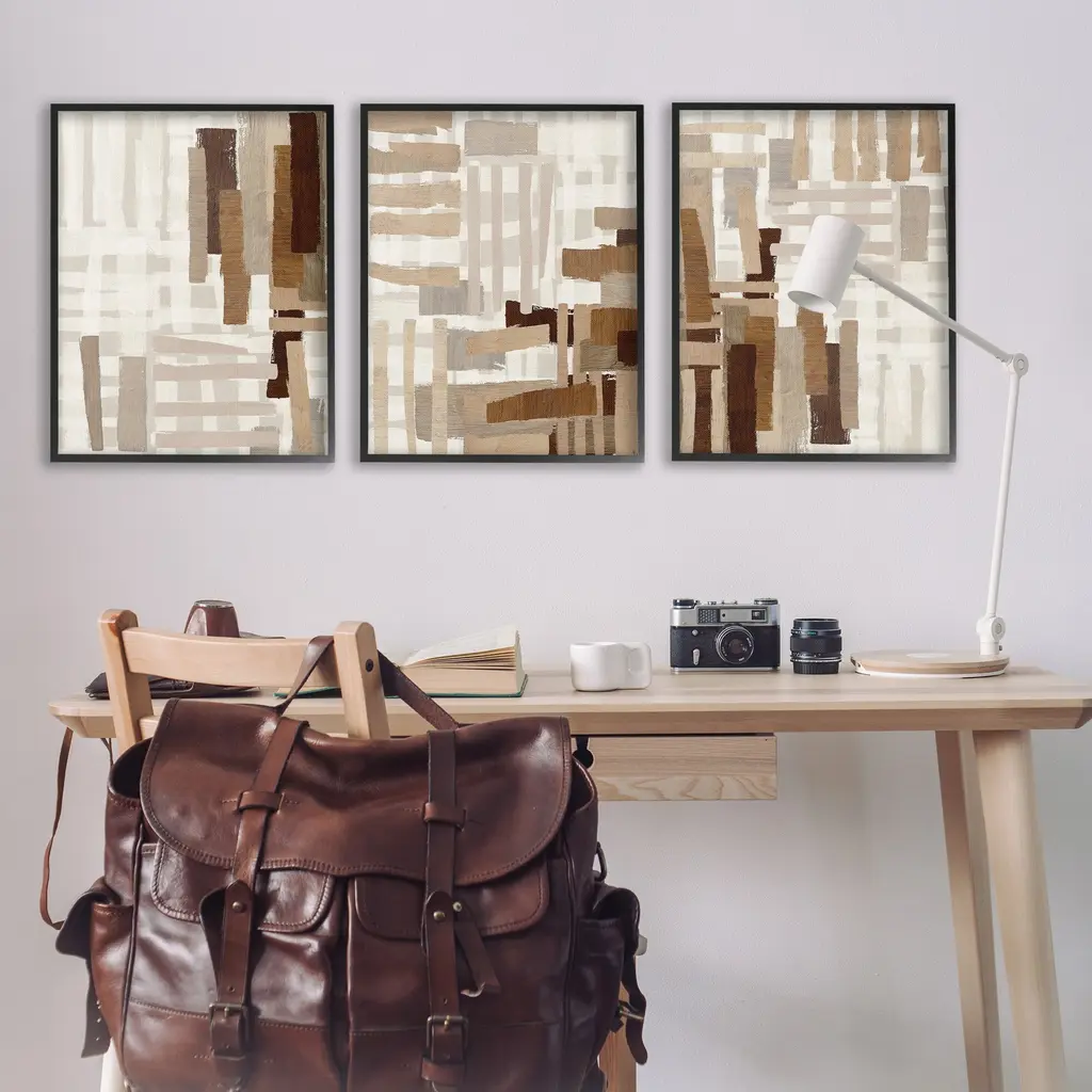 Fill any space in your home or office with our Framed Wall Art Sets. Our framed artwork is securely mounted into a 1.5-inch thick wood grain frame and ready to hang. Frames are available in three alluring styles: black, gray farmhouse and white. Stupell Wall Art is made in the USA.Features: Dimensions: 3 Piece Set, Each Panel is 11 x 1.5 x 14 FramedThree Piece Framed Giclee Sets are availabel as 11"x14", 16"x20", or 24"x30" Panels. All Framed Giclee Products have a 1.5" Depth.Wall Art is Ready to Hang with Hardware Free Hanging. No installation required. For Easy Set Up Lean or Layer Artwork on Shelf or Against Wall.Curated Wall Art Sets make it easy for you complete the theme for any room. Our giclée prints are carefully mounted on a durable MDF backing, and then perfectly finished in a 1.5 inch thick woodgrain frame. Mounted frame colors include black, gray farmhouse and white. Made In USA.Artwork Relates To: Abstract, Modern, Pattern, Rustic, NaturalDesign by Amber Sterling