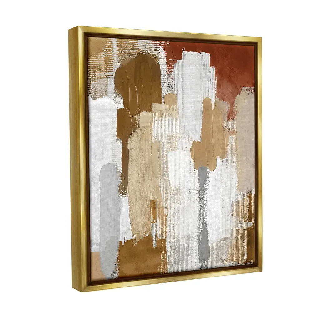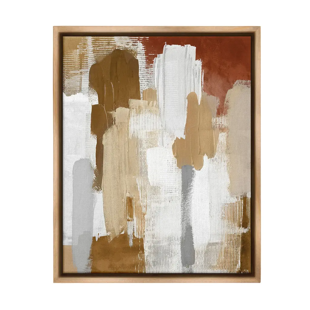 Elevate your home or office to the next level with Stupell Framed Floating Canvas Wall Art. Our premium hand-stretched canvas is mounted securely into a sturdy lightweight frame. The museum-style gap between the wrapped canvas and the box frame gives the illusion of floating artwork. Stupell Wall Art is made in the USA.Features: Dimensions: 17 x 1.7 x 21 Frame, 16 x 1.5 x 20 Canvas ArtFloating Frame Canvas Products are available in sizes 17"x21" and 25"x31". All Floating Frame Canvas Products have a 1.7" Depth.Wall Art is Ready to Hang with Hardware Free Hanging. No Installation required. For Easy Set Up Lean or Layer Artwork on Shelf or Against Wall. Artwork is Permently Fixed into the Frame.Our elevated 1.7" Thick Floating Frame is the perfect complement to our canvas style Wall Art. We use only the highest quality inks in house with industry leading printing solutions. Canvas is hand stretched over a durable wood foundation and then mounted securly into a Modern Box Frame. Made in the USA.Artwork Relates To: Abstract, Neutral, Desert, Southwestern, Beige, Brown, Pattern, Painting, Brush StrokesDesign by Amber Sterling