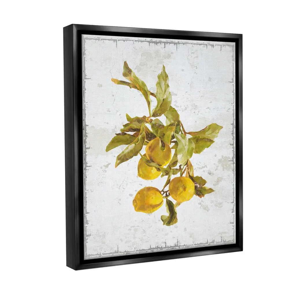 Elevate your home or office to the next level with Stupell Framed Floating Canvas Wall Art. Our premium hand-stretched canvas is mounted securely into a sturdy lightweight frame. The museum-style gap between the wrapped canvas and the box frame gives the illusion of floating artwork. Stupell Wall Art is made in the USA.Features: Dimensions: 17 x 1.7 x 21 Frame, 16 x 1.5 x 20 Canvas ArtFloating Frame Canvas Products are available in sizes 17"x21" and 25"x31". All Floating Frame Canvas Products have a 1.7" Depth.Wall Art is Ready to Hang with Hardware Free Hanging. No Installation required. For Easy Set Up Lean or Layer Artwork on Shelf or Against Wall. Artwork is Permently Fixed into the Frame.Our elevated 1.7" Thick Floating Frame is the perfect complement to our canvas style Wall Art. We use only the highest quality inks in house with industry leading printing solutions. Canvas is hand stretched over a durable wood foundation and then mounted securly into a Modern Box Frame. Made in the USA.Artwork Relates To: Citrus, Fruit, Lemon, Plant, Produce, Rustic, CountryDesign by GraffiTee Studios