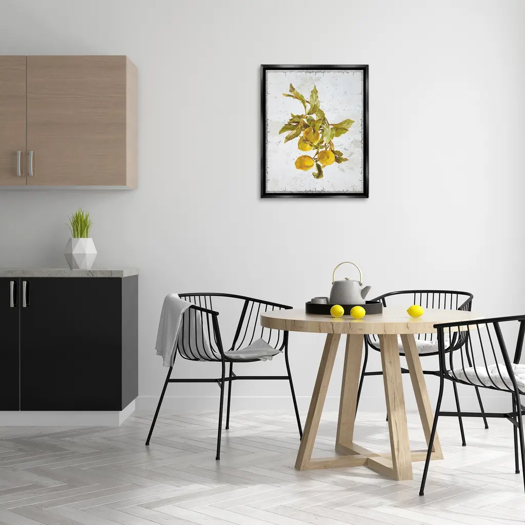 Stupell Natural Lemon Branch Framed Floater Canvas Wall Art Design By Graffitee Studios - 25 X 31 - Black
