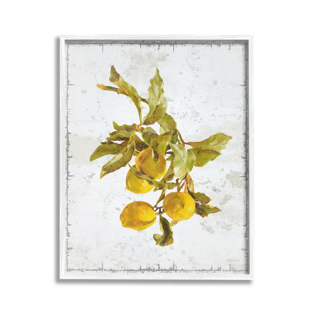 Add dimension to any room with our textured Framed Giclee Artwork. Our framed artwork is securely mounted into a 1.5-inch thick wood grain frame and ready to hang. Frames are available in three alluring styles: black, gray farmhouse and white. In addition, you should check out our oversized options if you want a statement piece. Stupell Wall Art is made in the USA.Features: Dimensions: 11 x 1.5 x 14 FramedFramed Giclee Products are available in the sizes 11"x14", 16"x20" or 24"x30". All Framed Giclee Products have a 1.5" Depth. Wall Art is Ready to Hang with Hardware Free Hanging. No installation required. For Easy Set Up Lean or Layer Artwork on Shelf or Against Wall.Our giclée prints are carefully mounted on a durable MDF backing, and then perfectly finished in a 1.5 inch thick woodgrain frame. Mounted frame colors include black, gray farmhouse and white. Made In USA.Artwork Relates To: Citrus, Fruit, Lemon, Plant, Produce, Rustic, CountryDesign by GraffiTee Studios