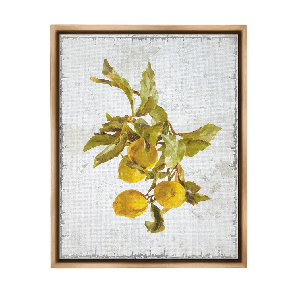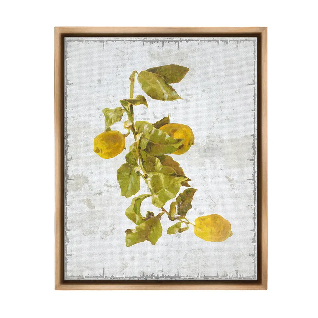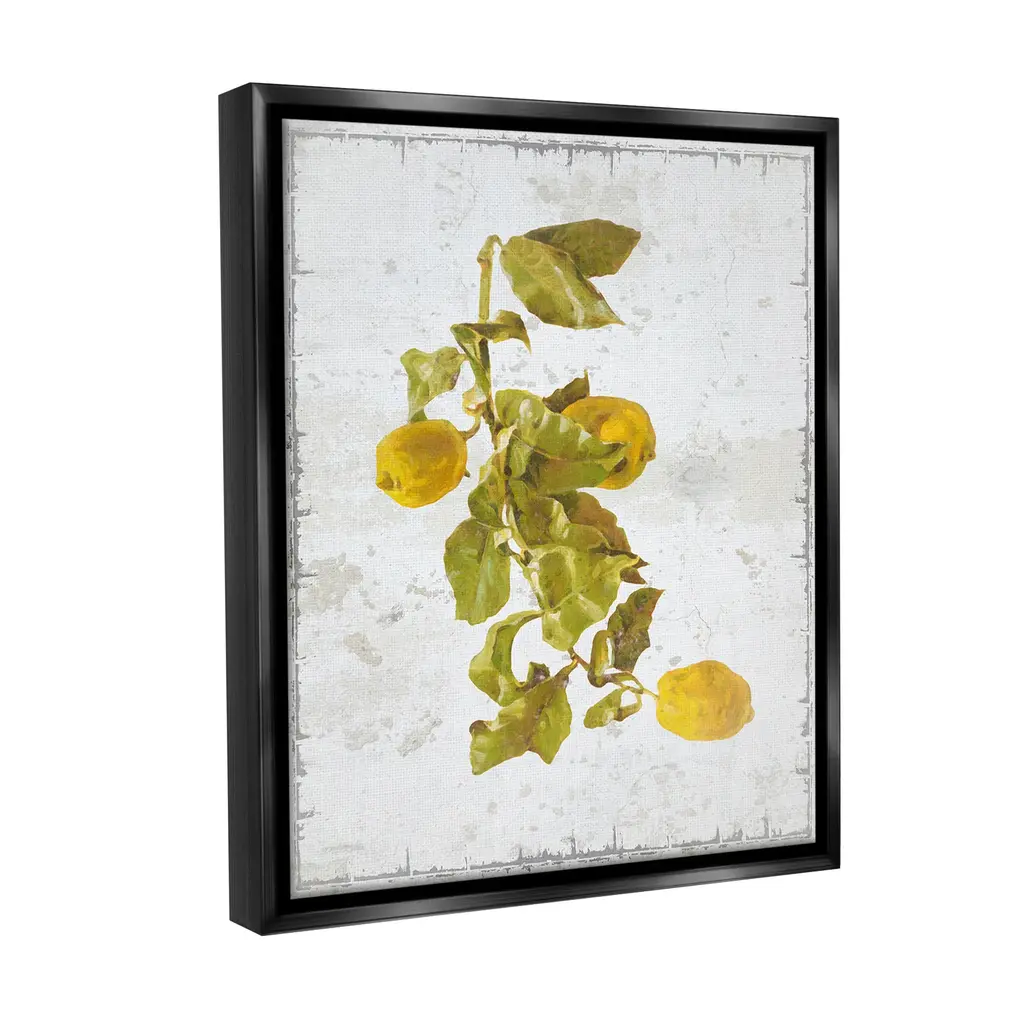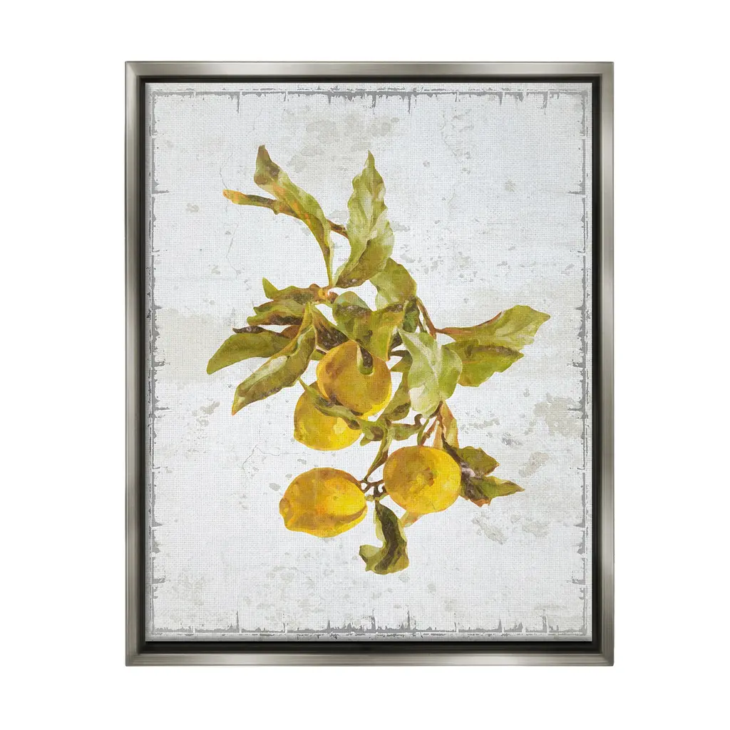 Elevate your home or office to the next level with Stupell Framed Floating Canvas Wall Art. Our premium hand-stretched canvas is mounted securely into a sturdy lightweight frame. The museum-style gap between the wrapped canvas and the box frame gives the illusion of floating artwork. Stupell Wall Art is made in the USA.Features: Dimensions: 17 x 1.7 x 21 Frame, 16 x 1.5 x 20 Canvas ArtFloating Frame Canvas Products are available in sizes 17"x21" and 25"x31". All Floating Frame Canvas Products have a 1.7" Depth.Wall Art is Ready to Hang with Hardware Free Hanging. No Installation required. For Easy Set Up Lean or Layer Artwork on Shelf or Against Wall. Artwork is Permently Fixed into the Frame.Our elevated 1.7" Thick Floating Frame is the perfect complement to our canvas style Wall Art. We use only the highest quality inks in house with industry leading printing solutions. Canvas is hand stretched over a durable wood foundation and then mounted securly into a Modern Box Frame. Made in the USA.Artwork Relates To: Citrus, Fruit, Lemon, Plant, Produce, Rustic, CountryDesign by GraffiTee Studios