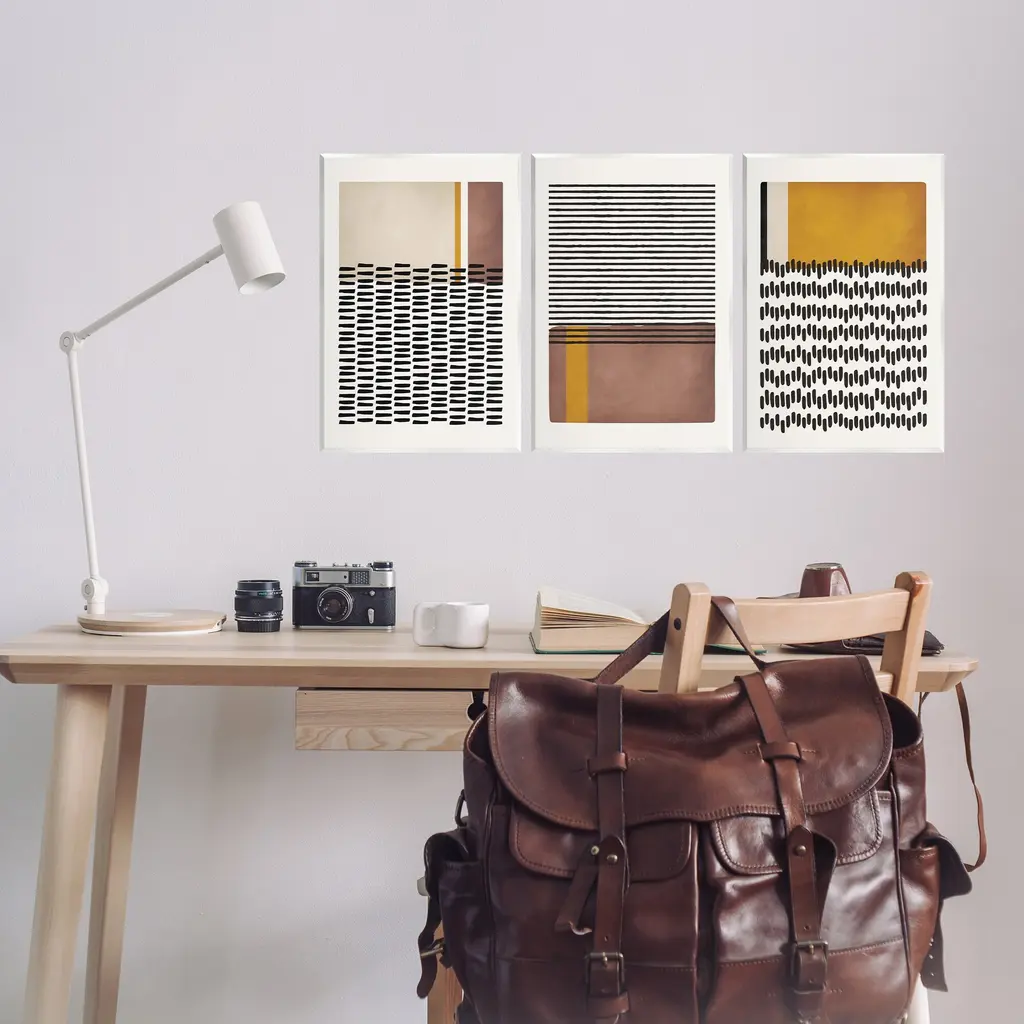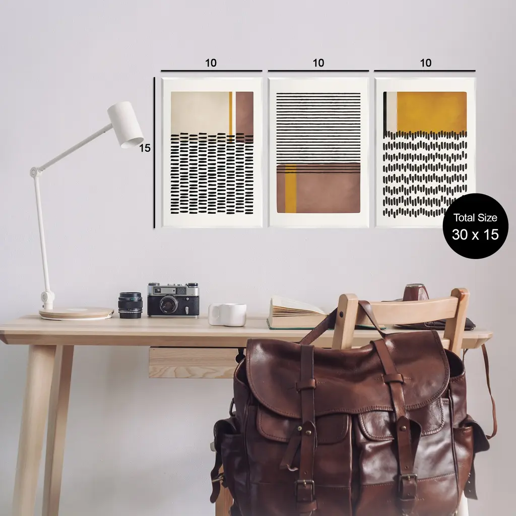 Fill any space with Stupell Wall Art Sets. Our wall plaques start as high-quality lithograph prints mounted on durable 0.5-inch thick MDF wood. Each piece is hand finished and comes with a fresh layer of white foil on the sides to give it a crisp, clean look. Plaques arrive ready to hang without installation and come with removable plastic corners to keep them from damage in transit. Stupell Wall Art is made in the USA.Features: Dimensions: 3 Piece Set, Each Panel is 10 x 0.5 x 15 InchesThree Piece Wall Plaque Sets are available as 10"x15" or 13"x19" Panels. All Wall Plaque Panels have a 0.5" Depth.Wall Art is Ready to Hang with Hardware Free Hanging. No installation required. For Easy Set Up Lean or Layer Artwork on Shelf or Against Wall.All of our wall plaques start off as high quality lithograph prints that are then mounted on durable 0.5 inch thick MDF wood. Each piece is hand finished and comes with a fresh layer of foil on the sides to give it a crisp clean look. Made In USA.Artwork Relates To: Abstract, Modern, Southwestern, Natural, Neutral, BohoDesign by JJ Design House, LLC.