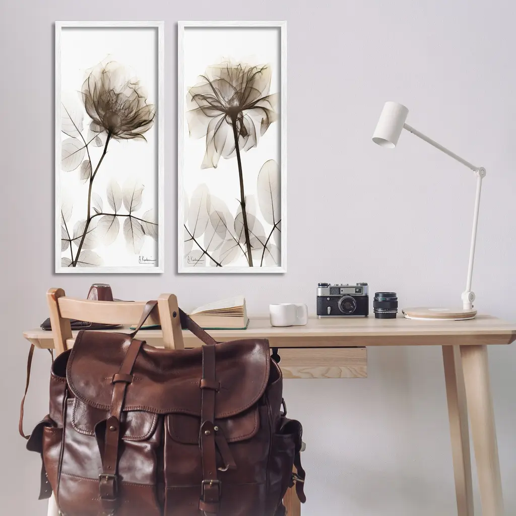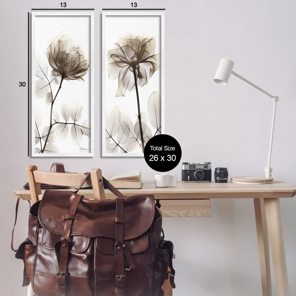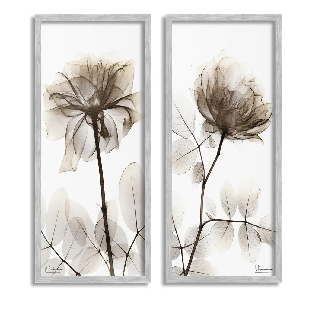 Fill any space in your home or office with our Framed Wall Art Sets. Our framed artwork is securely mounted into a 1.5-inch thick wood grain frame and ready to hang. Frames are available in three alluring styles: black, gray farmhouse and white. Stupell Wall Art is made in the USA.Features: Dimensions: 2 Piece Set, Each Panel is 10 x 1.5 x 24 FramedTwo Piece Framed Giclee Sets are available as 10"x24" or 13"x30" Panels. All Framed Giclee Panels have a 1.5" Depth. Wall Art is Ready to Hang with Hardware Free Hanging. No installation required. For Easy Set Up Lean or Layer Artwork on Shelf or Against Wall.Curated Wall Art Sets make it easy for you complete the theme for any room. Our giclée prints are carefully mounted on a durable MDF backing, and then perfectly finished in a 1.5 inch thick woodgrain frame. Mounted frame colors include black, gray farmhouse and white. Made In USA.Artwork Relates To: Flower, Plant, Abstract, Modern, X-Ray, Blossom, Leaf, NatureDesign by Albert Koetsier